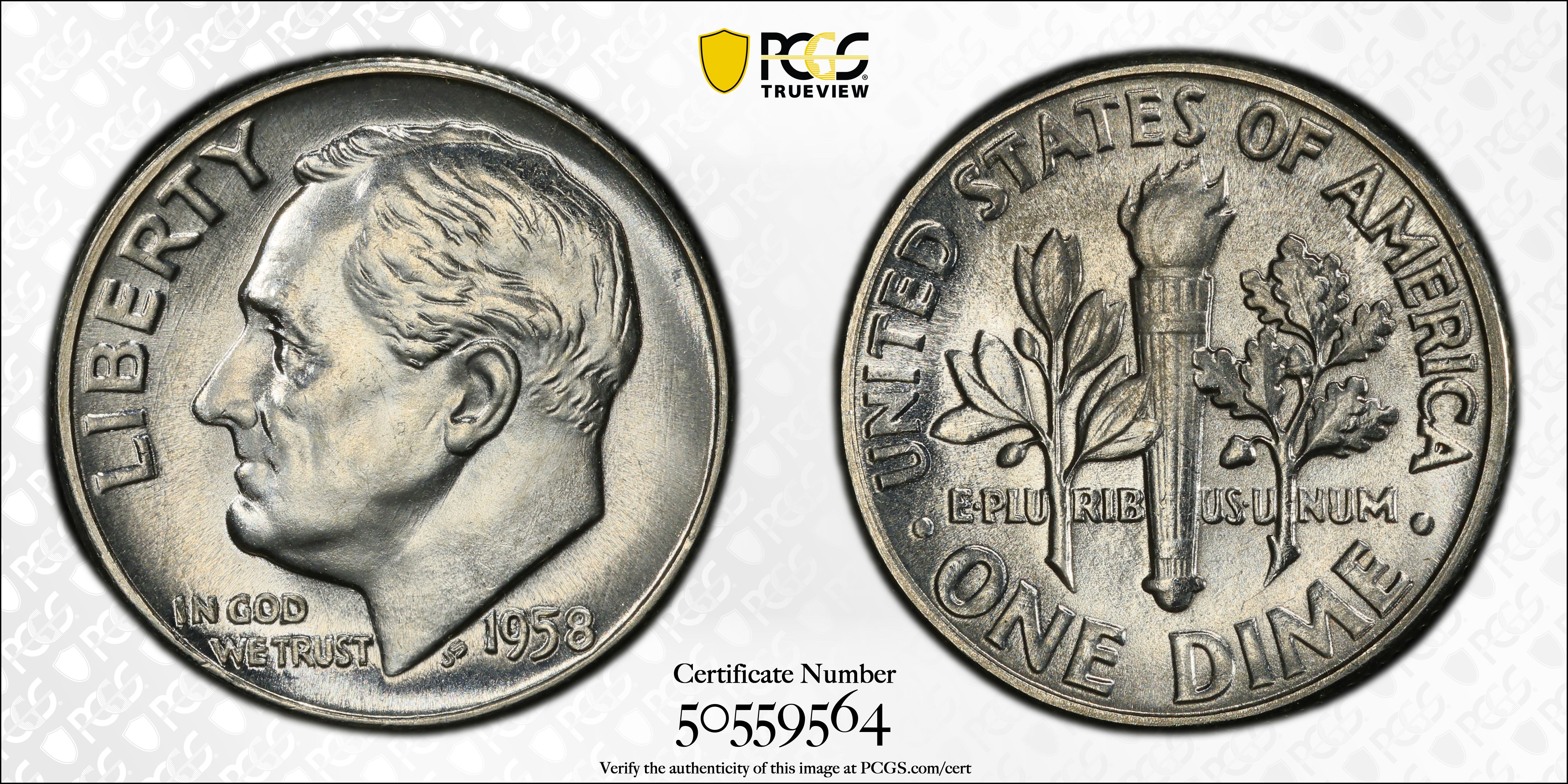 1958 10C MS66 Certification #50559564, PCGS #5116