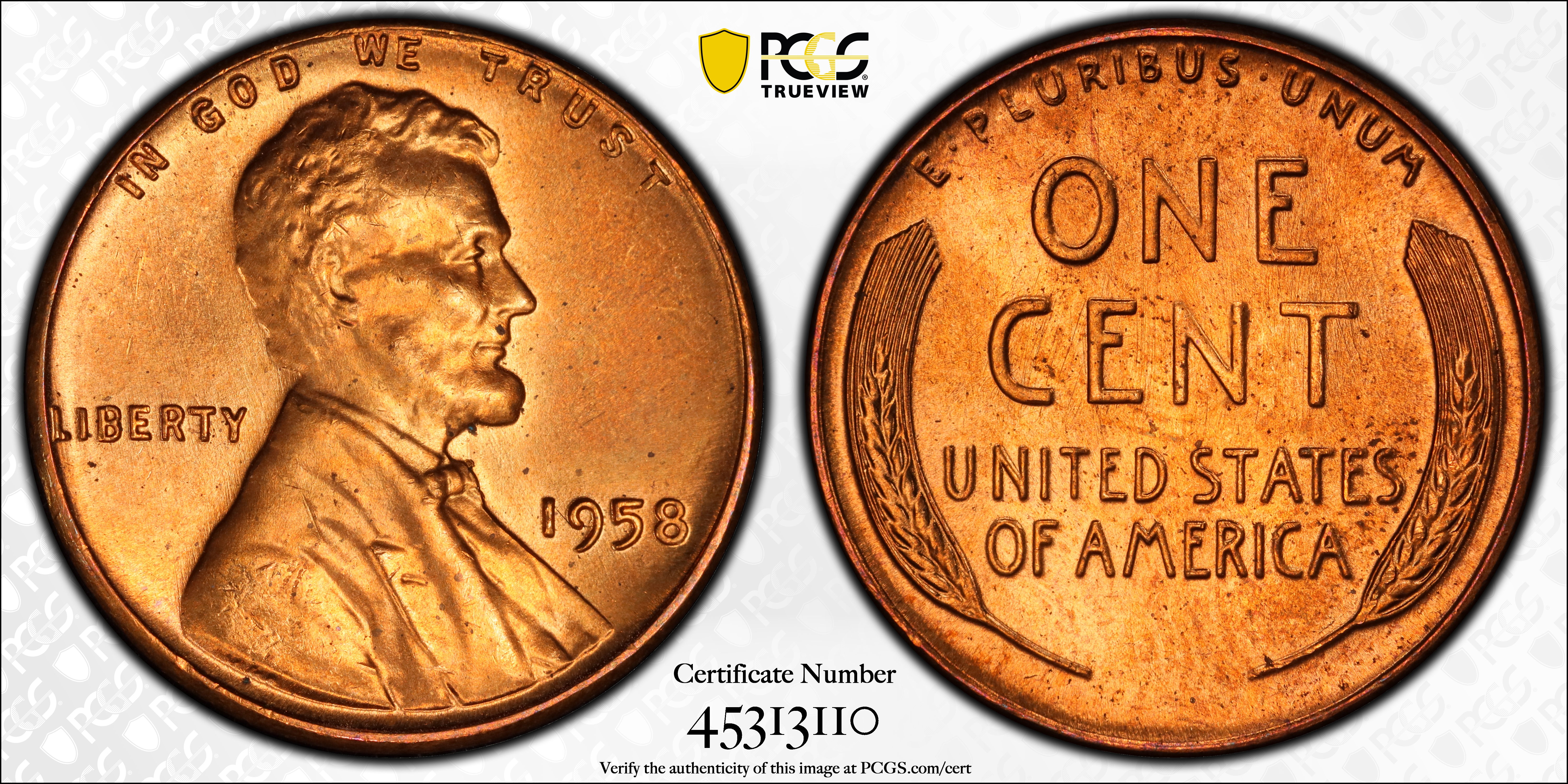1958 1C, RD MS65RD Certification #45313110, PCGS #2848