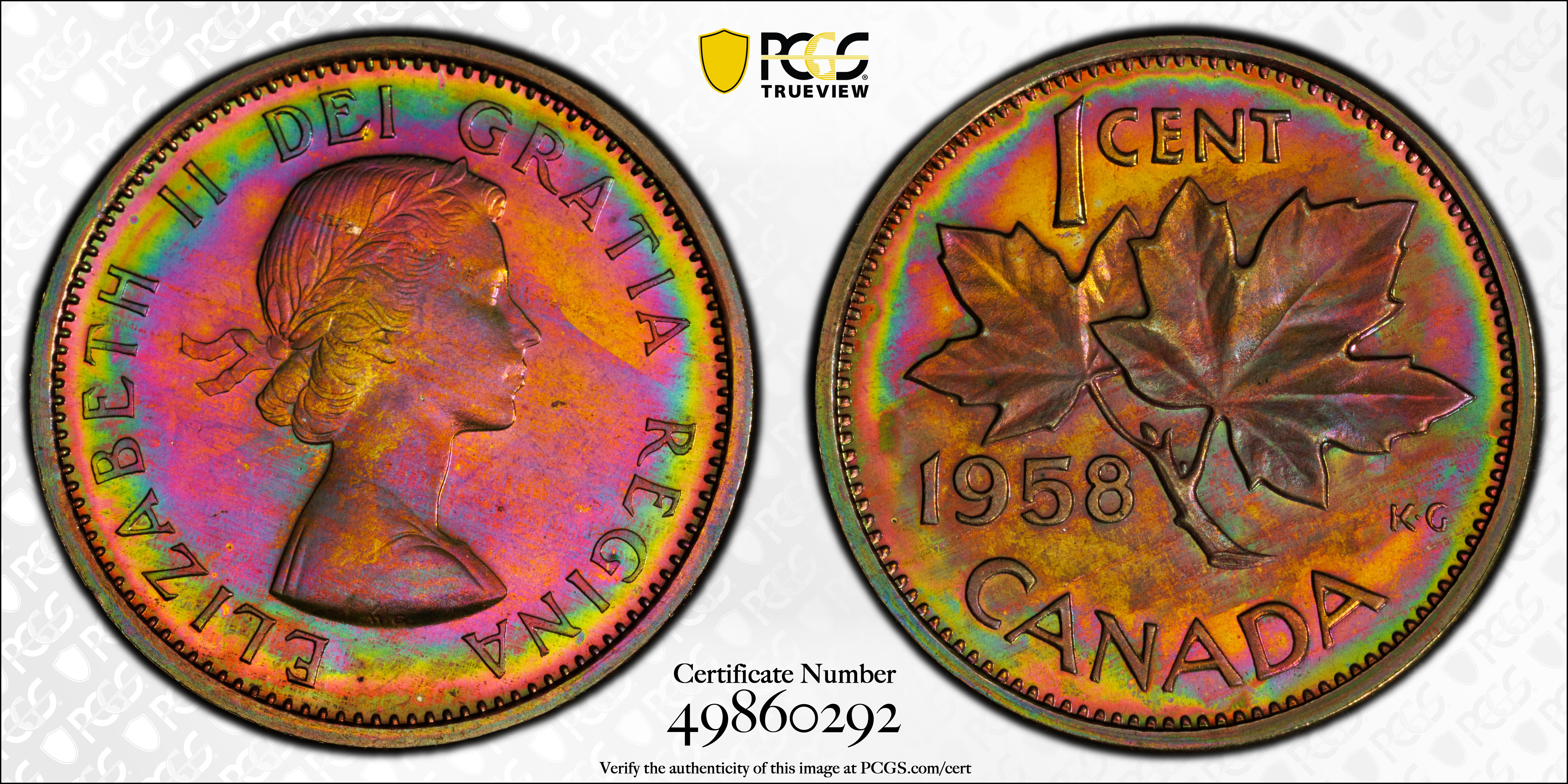 1958 1C, RB PL66RB Certification #49860292, PCGS #30670