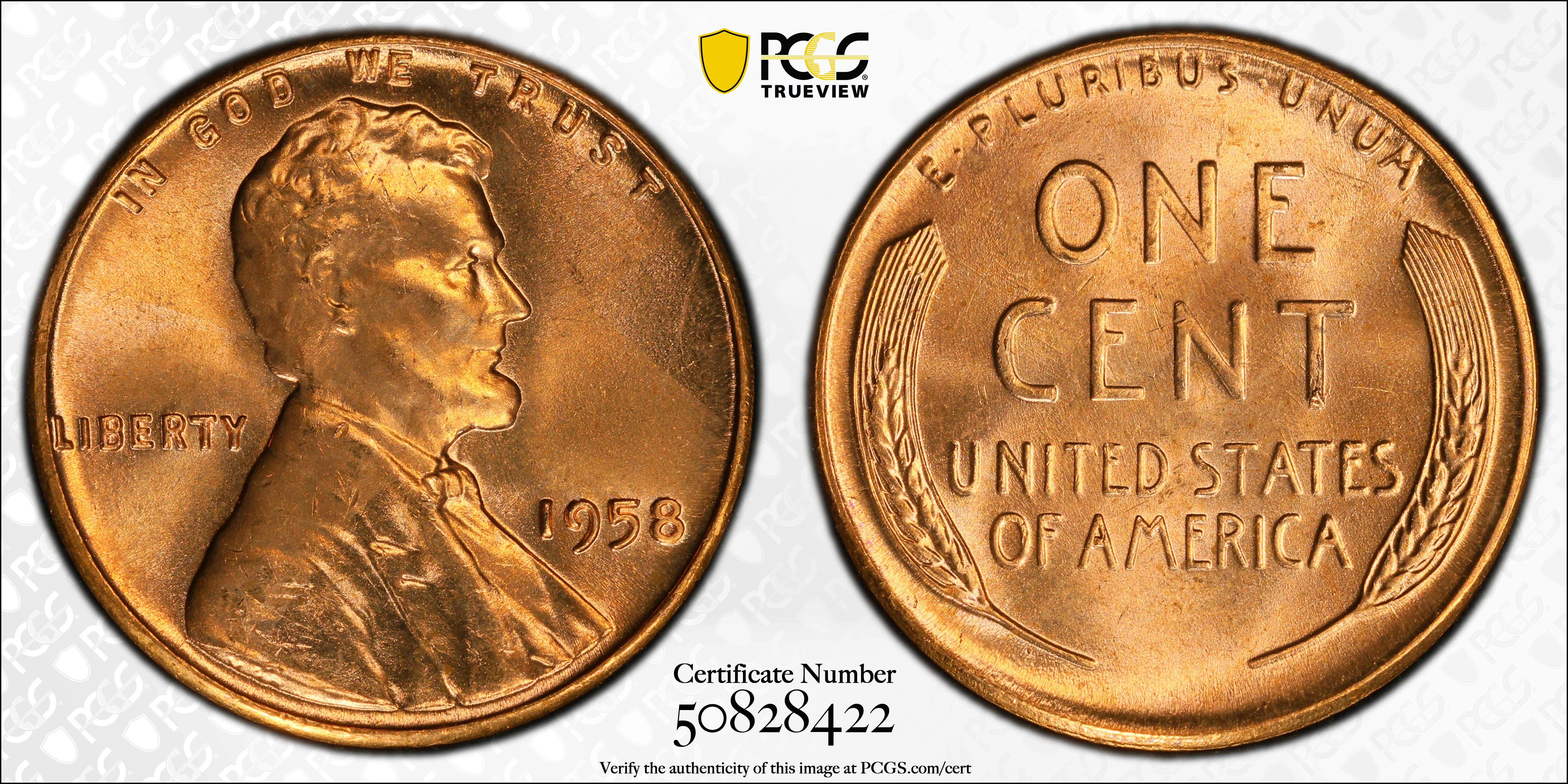 1958 1C, RD MS64RD Certification #50828422, PCGS #2848