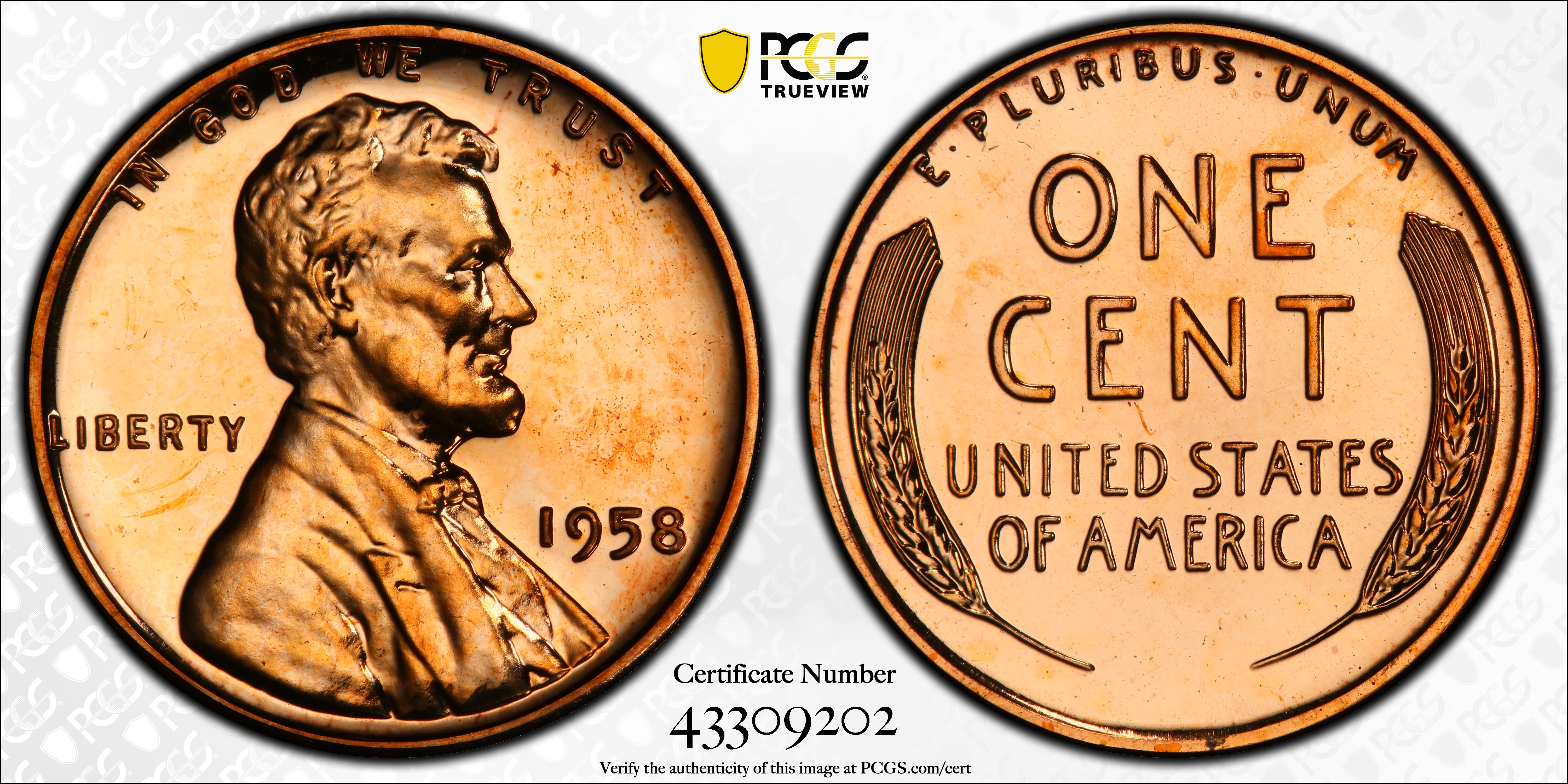 1958 1C, RD PR67RD Certification #43309202, PCGS #3383