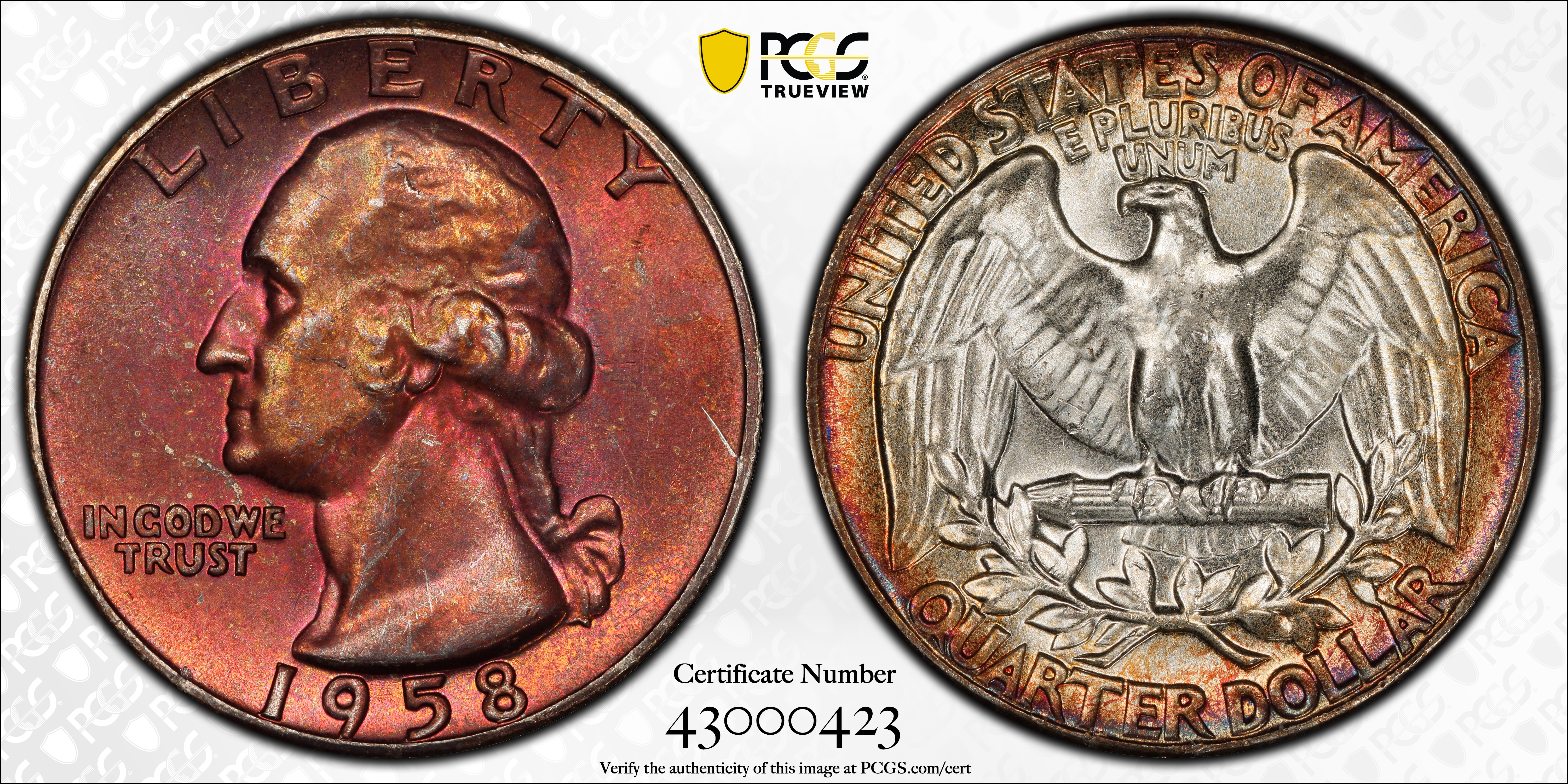 1958 25C MS65 Certification #43000423, PCGS #5864