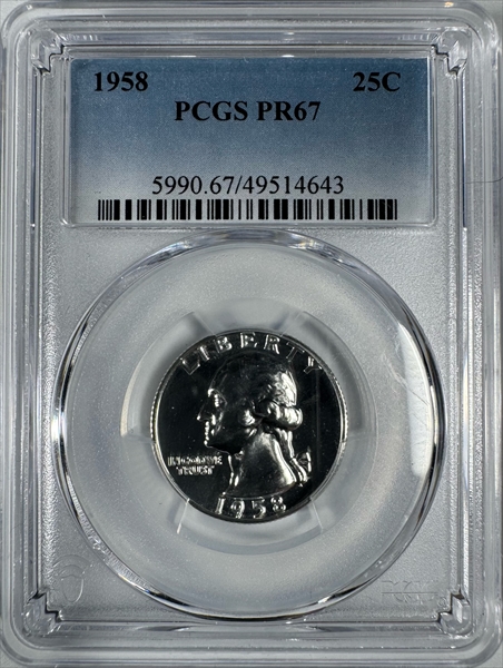1958 25C PR67 Certification #49514643, PCGS #5990