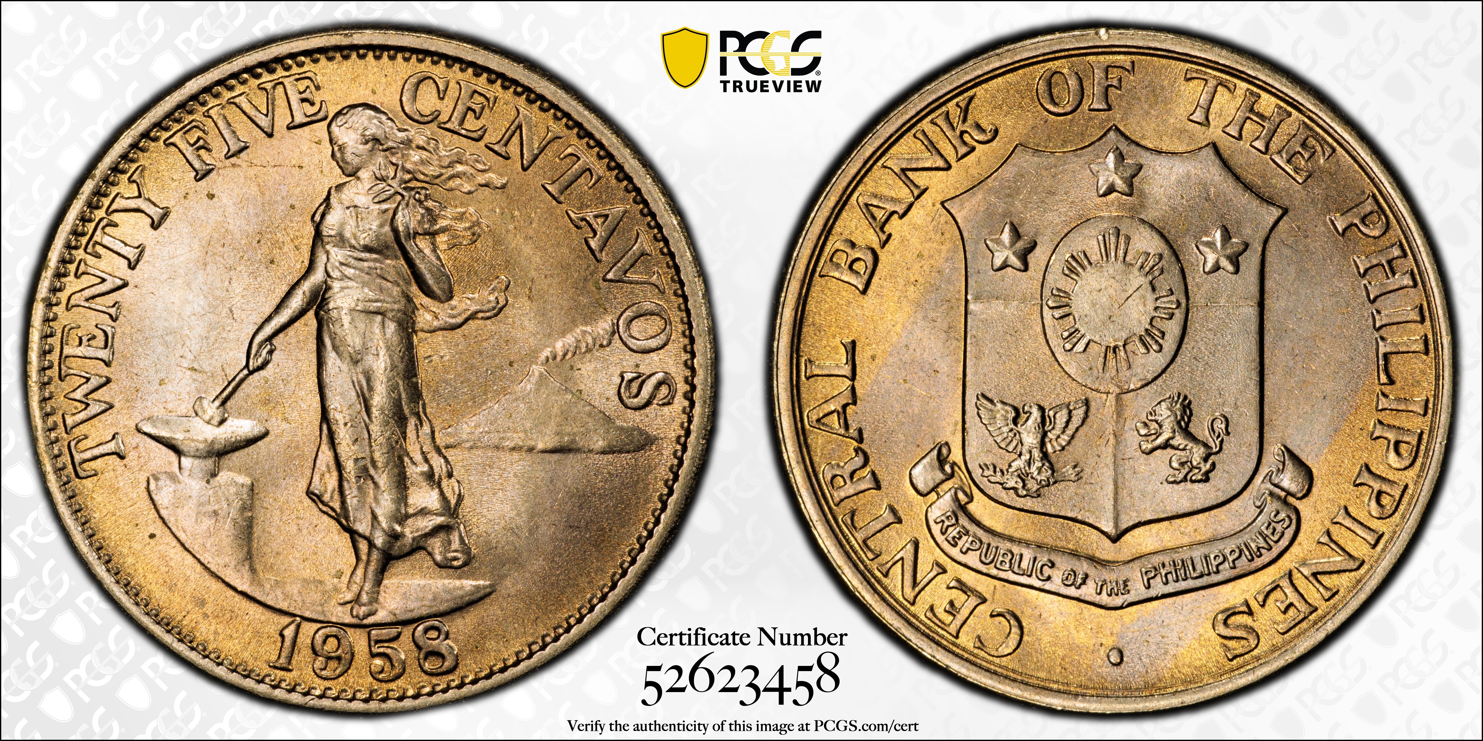 1958 25C MS65 Certification #52623458, PCGS #375043