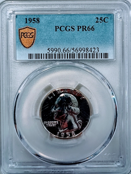 1958 25C PR66 Certification #56998423, PCGS #5990