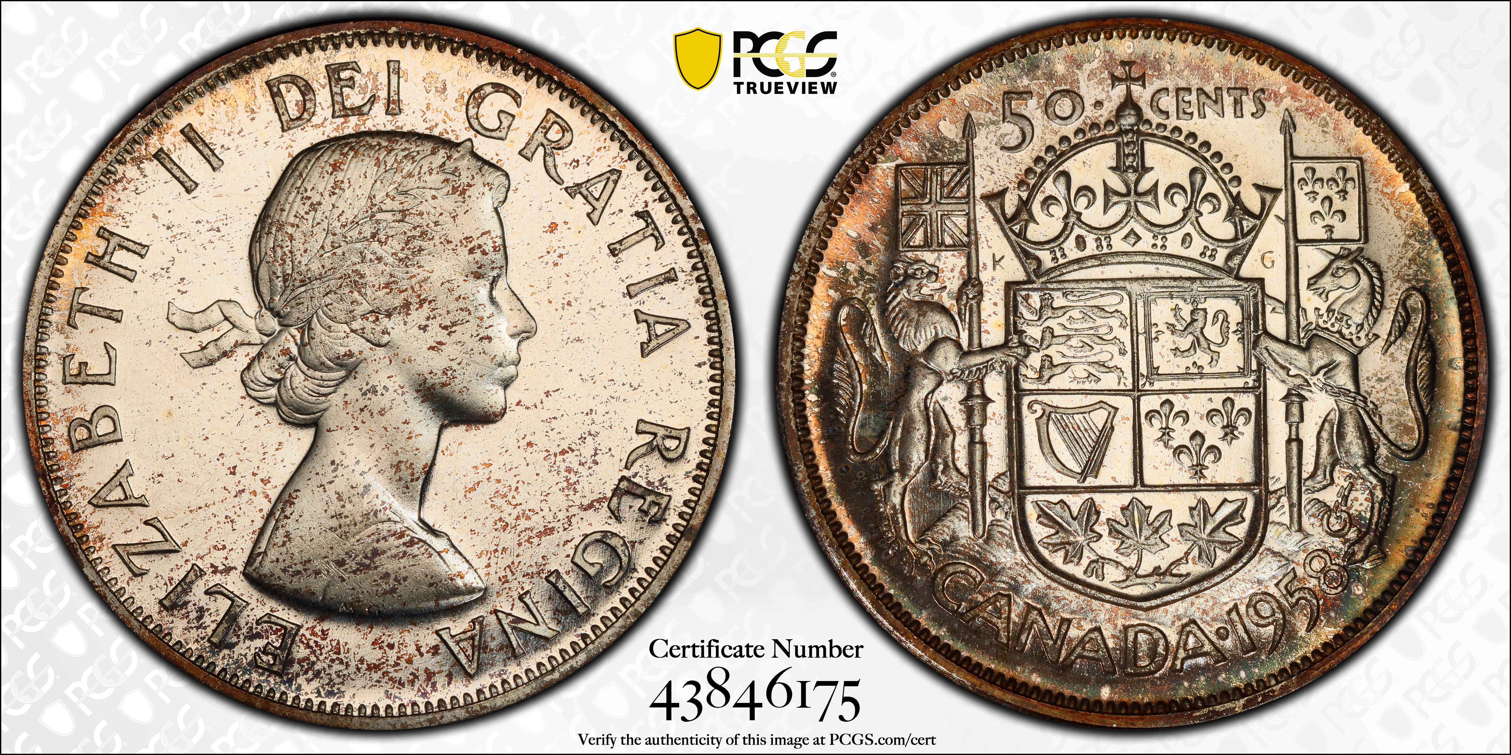 1958 50C PL65 Certification #43846175, PCGS #32301