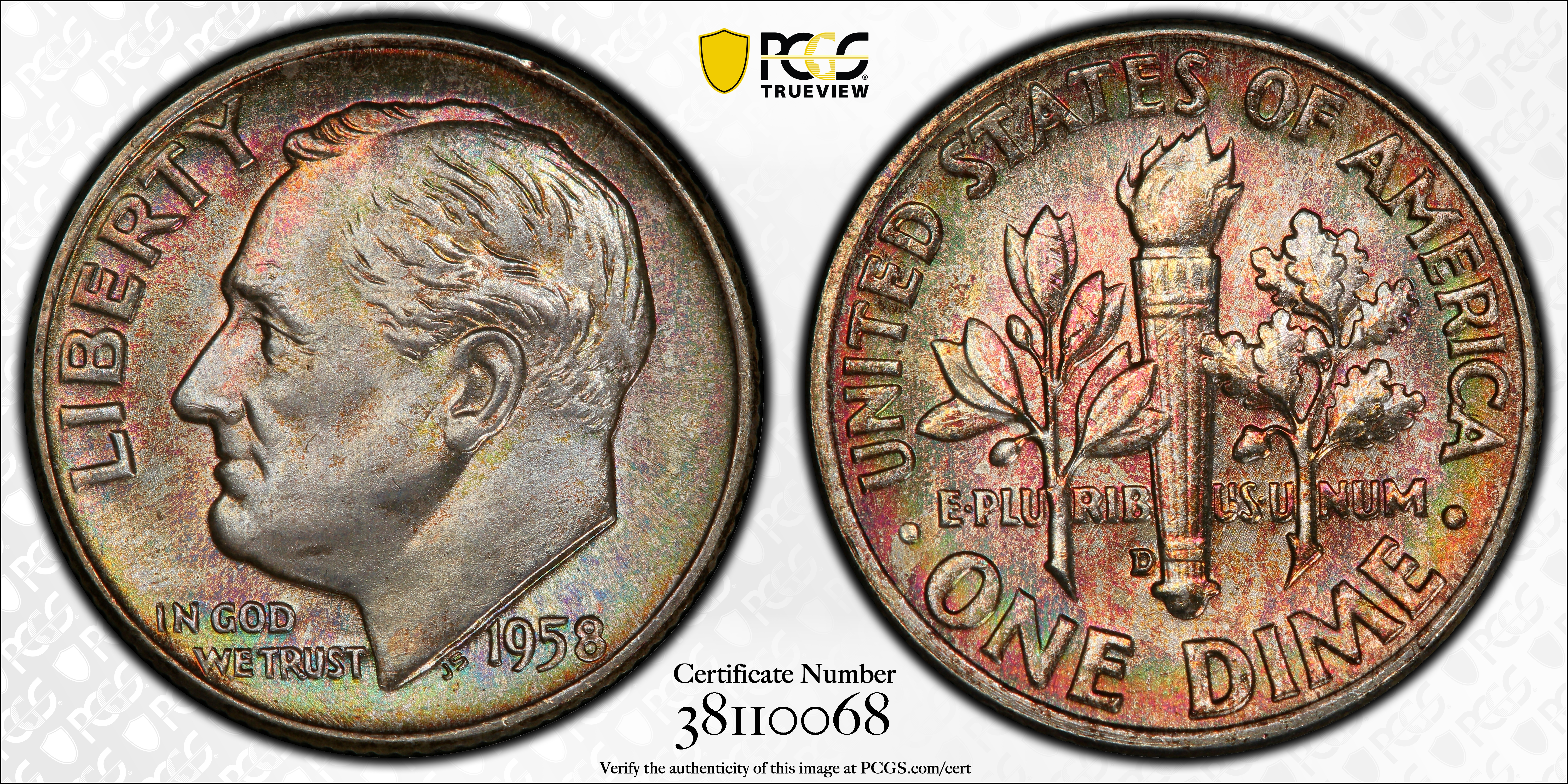 1958-D 10C MS66 Certification #38110068, PCGS #5117