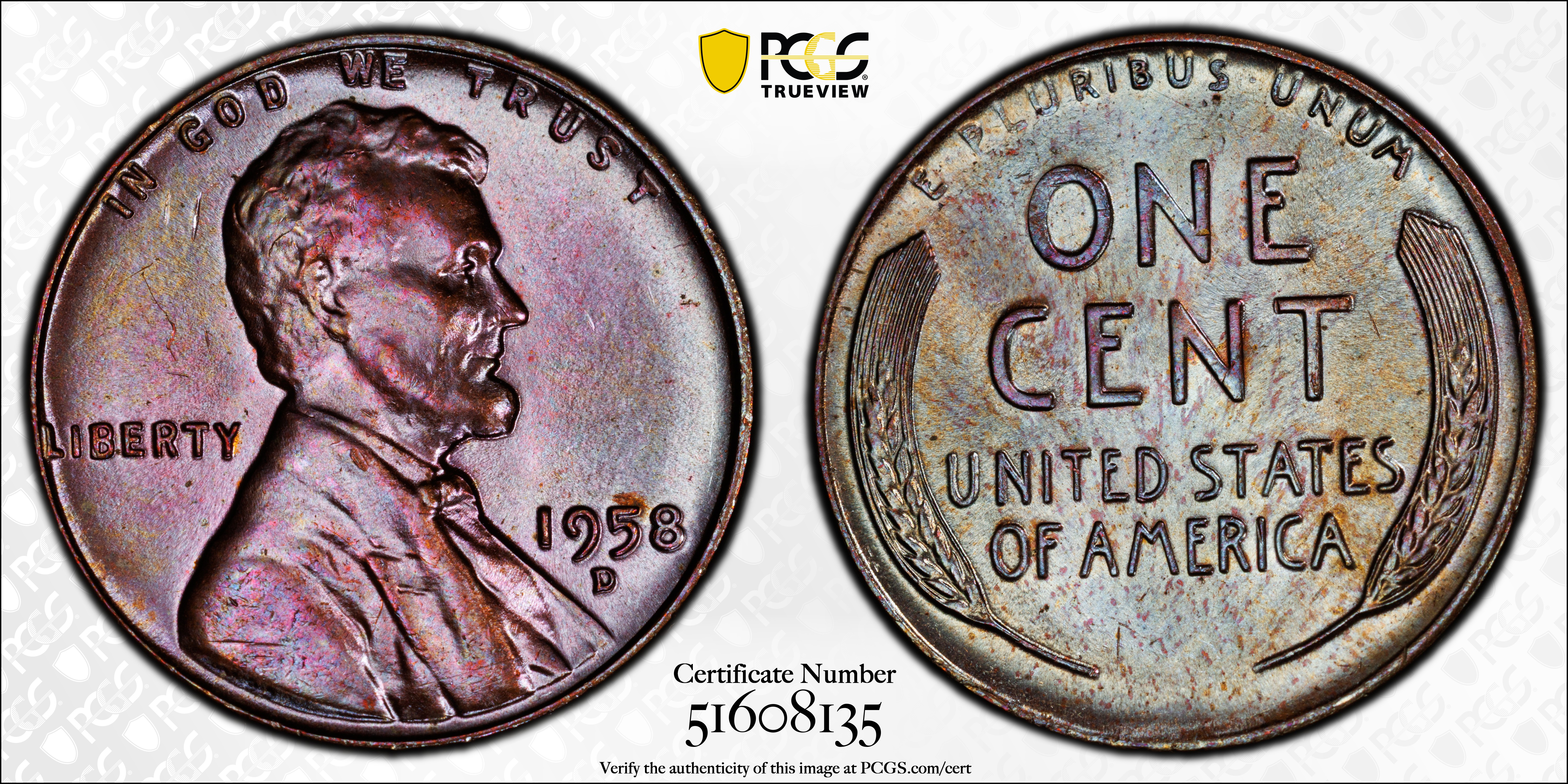 1958-D 1C, BN N1BN Certification #51608135, PCGS #2849