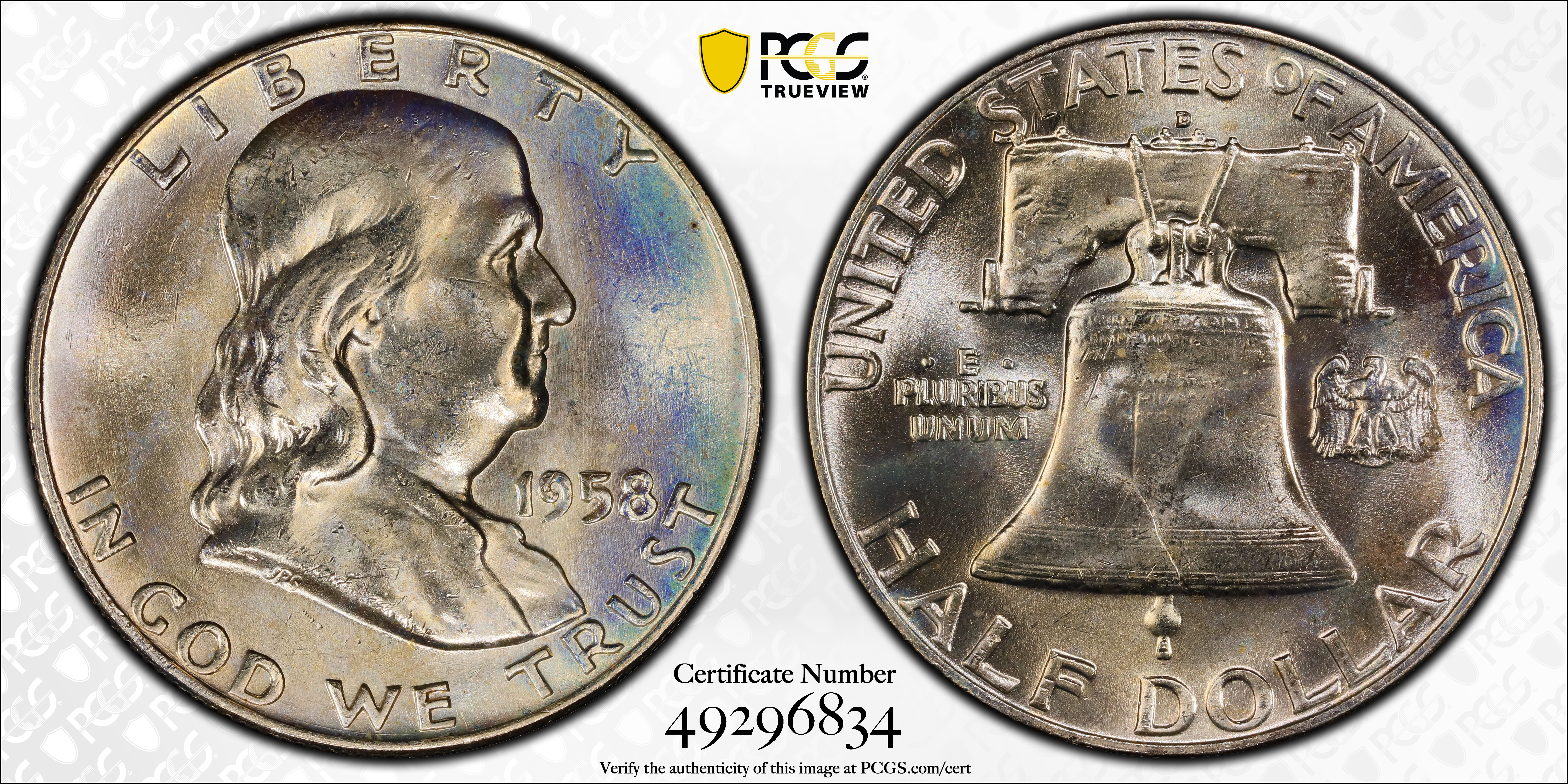 1958-D 50C, FBL MS63FBL Certification #49296834, PCGS #86675