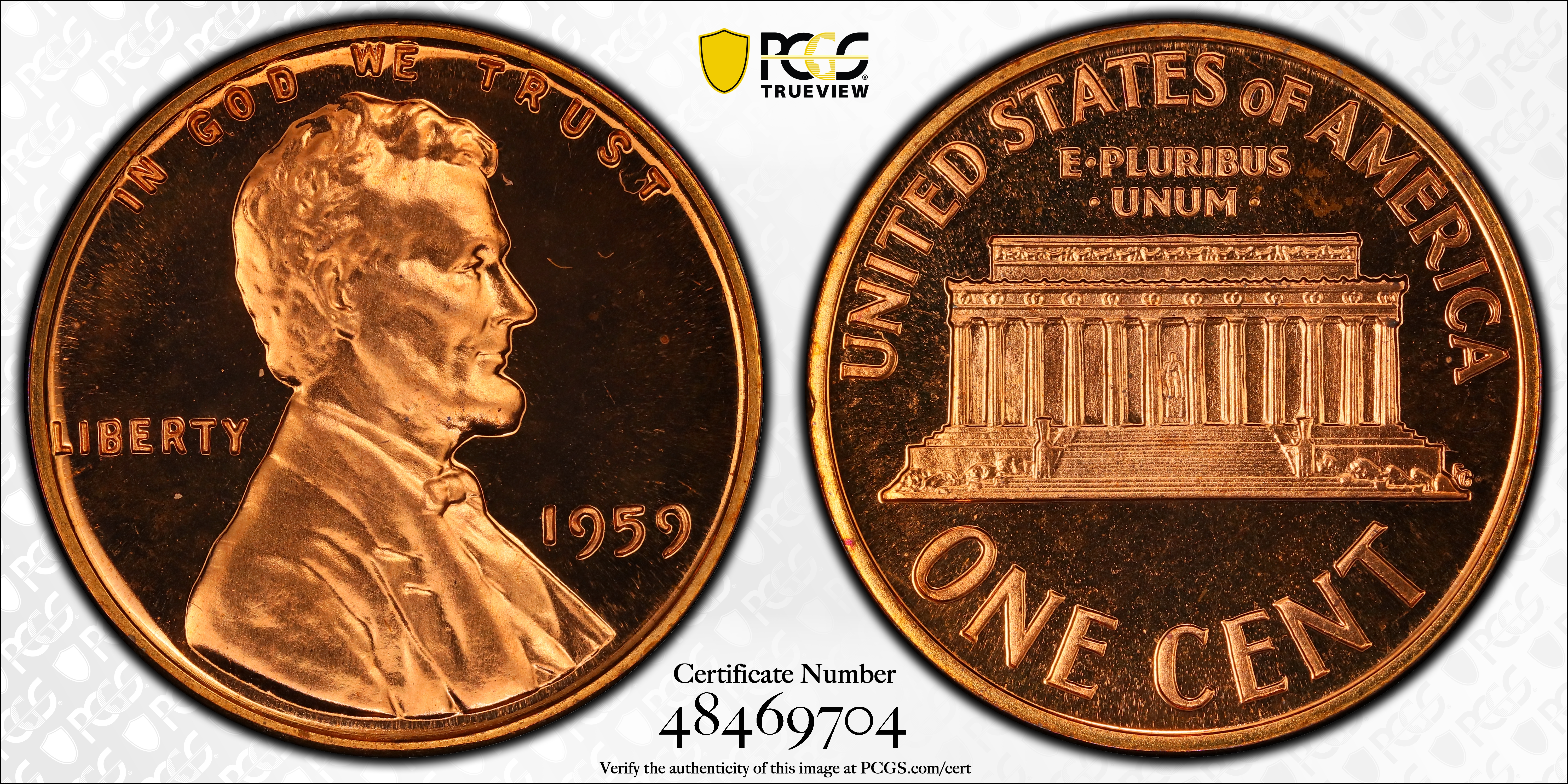 1959 1C, RD PR66RD Certification #48469704, PCGS #3386