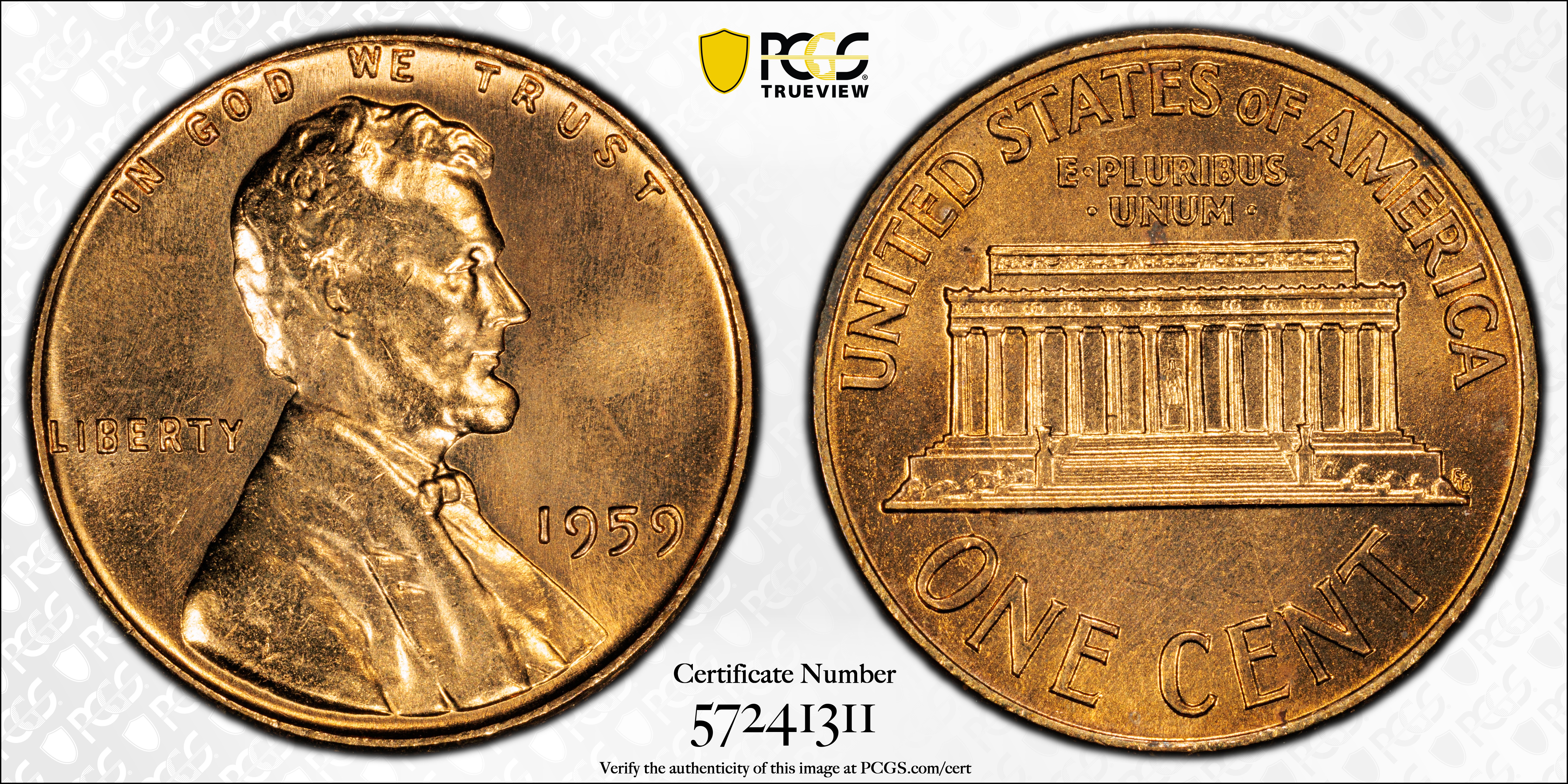 1959 1C, RD MS67+ RD Certification #57241311, PCGS #2854