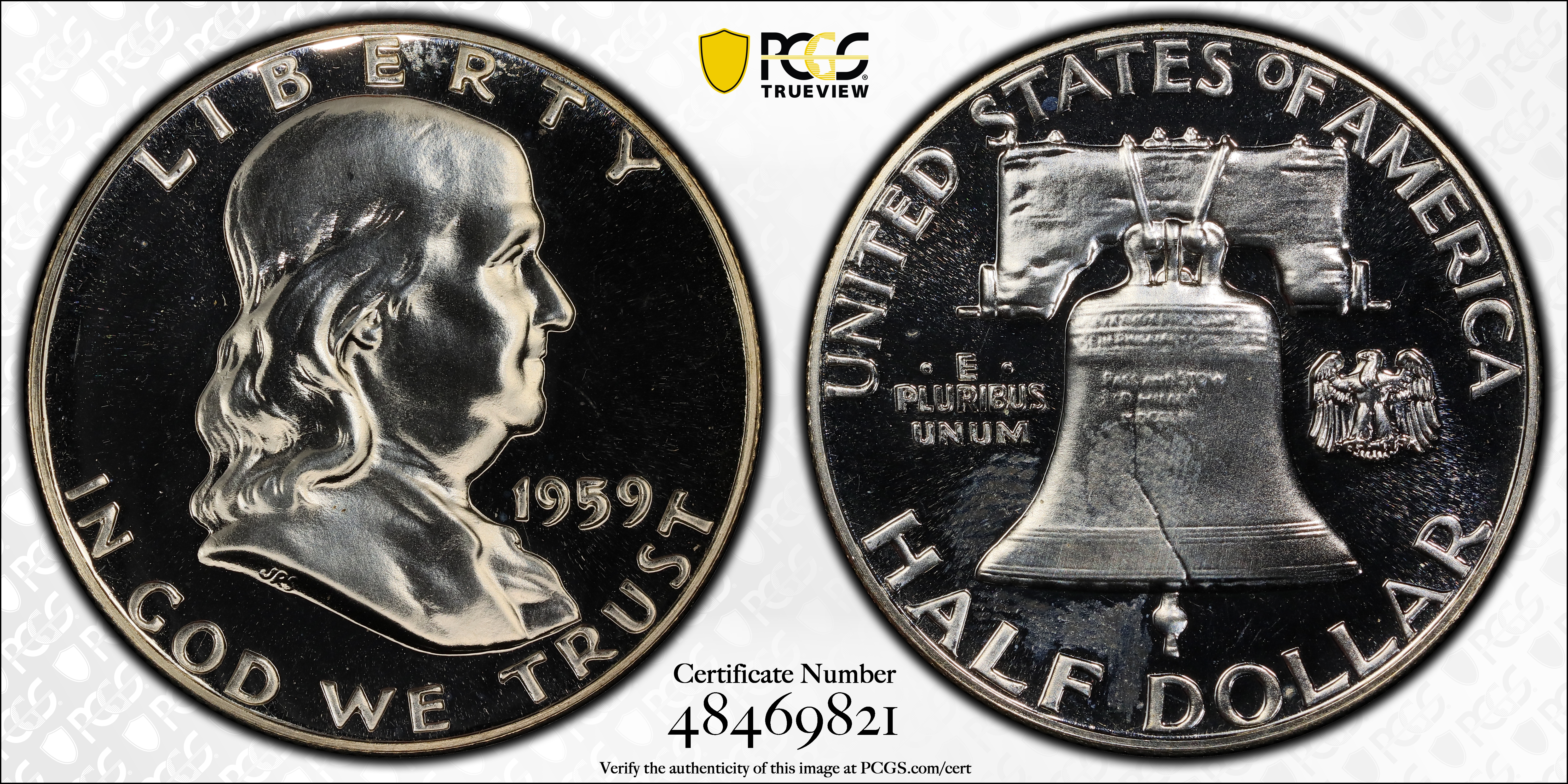 The 1959 Proof Franklin Half Dollar is one of the more common dates from the 1950's, for the Franklin Half Dollar series. However, it is scarcer than all the dates that were struck in the 1960's.