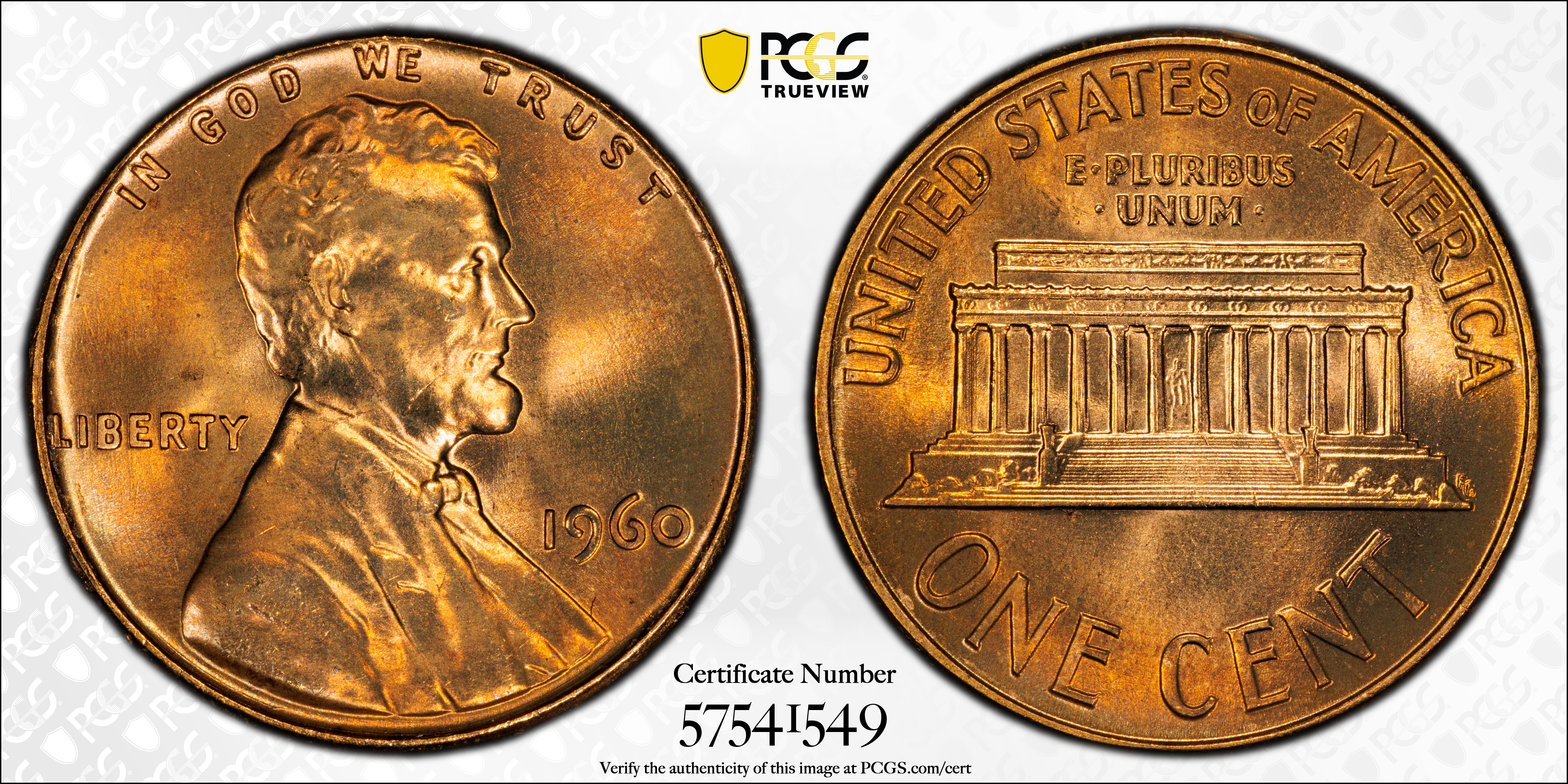 1960 1C Large Date, RD MS67+ RD Certification #57541549, PCGS #2860