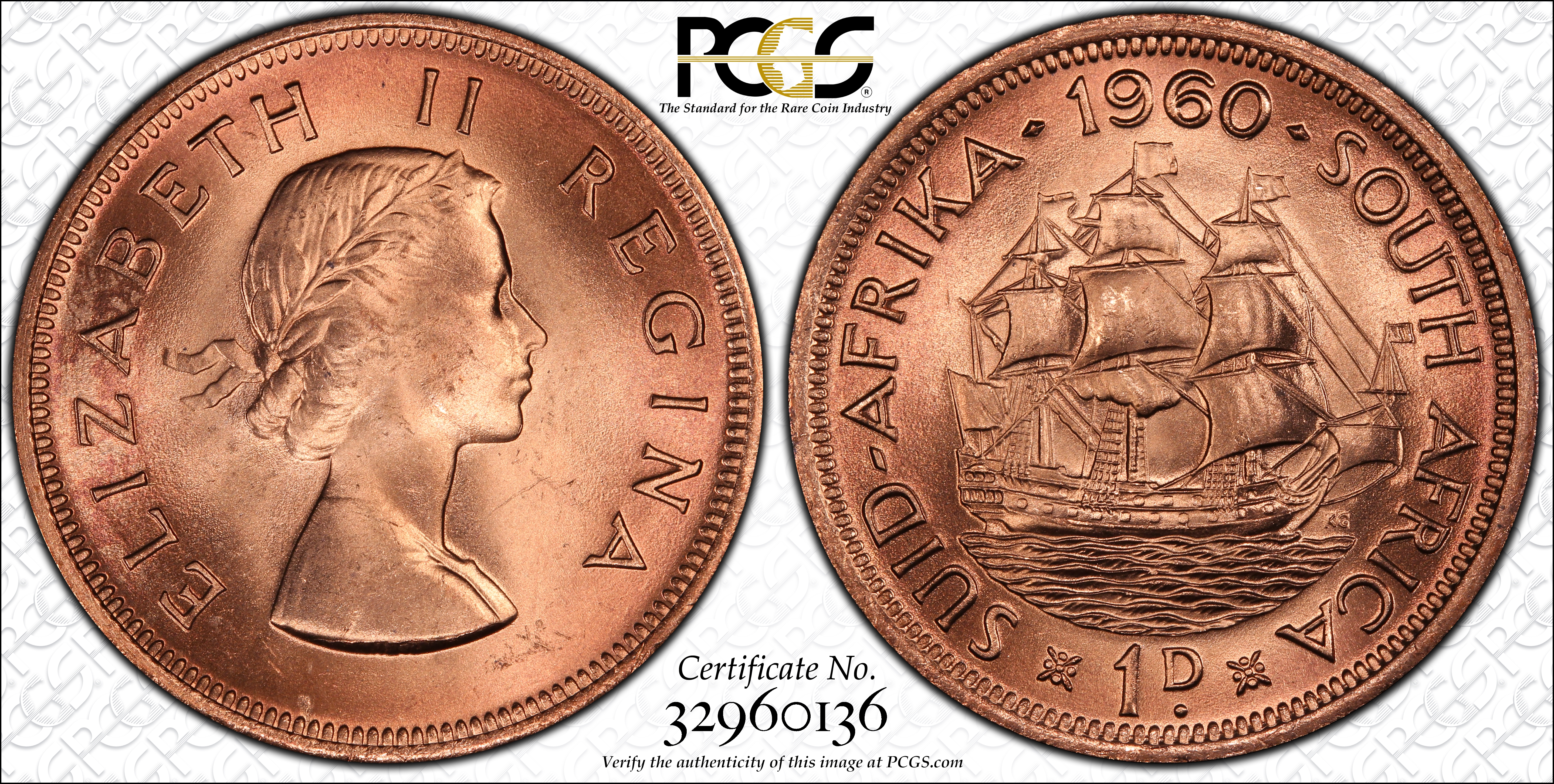 1960 1D, RD MS65RD Certification #32960136, PCGS #174259