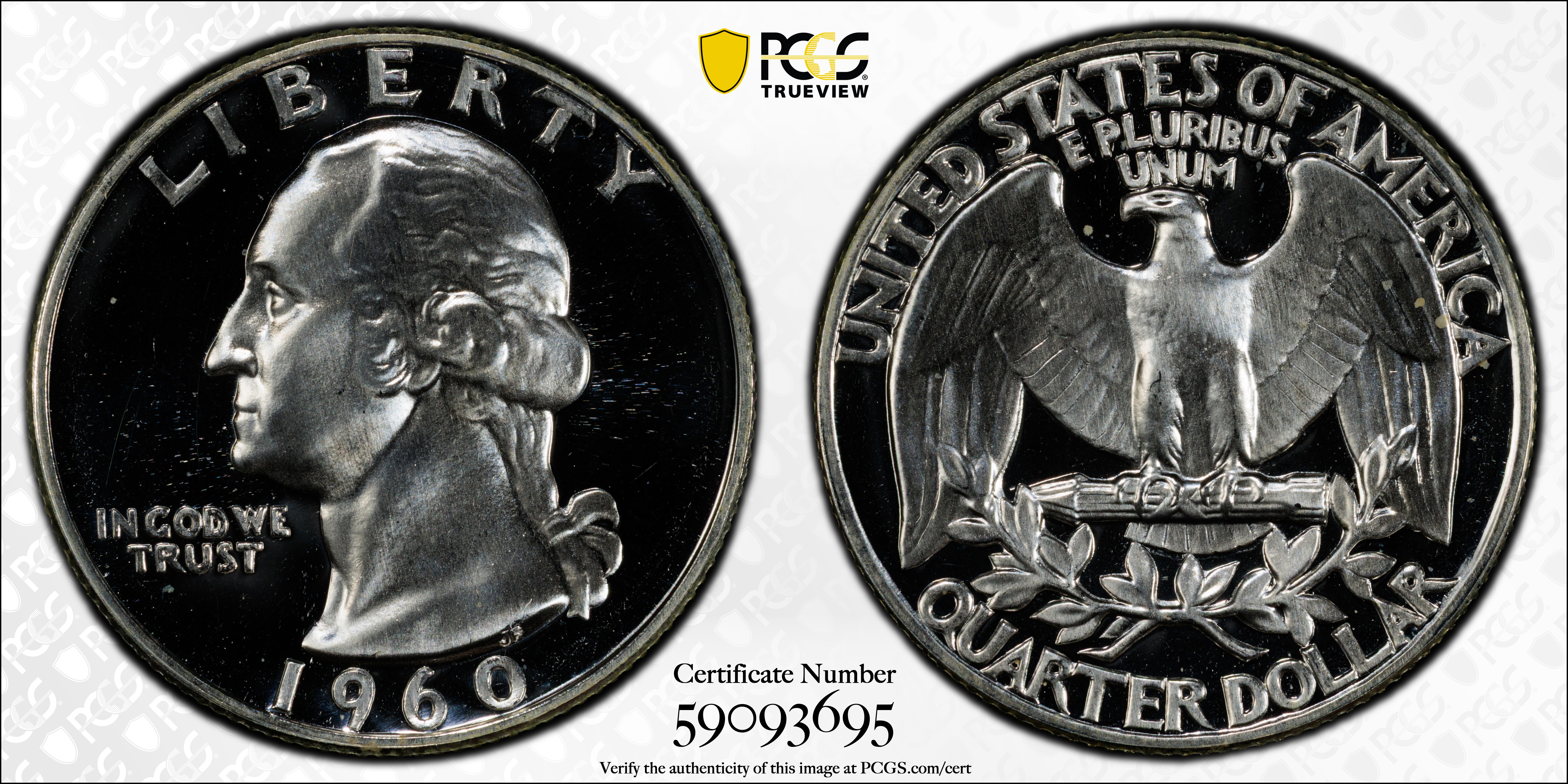 1960 25C, CAM PR67CAM Certification #59093695, PCGS #85992