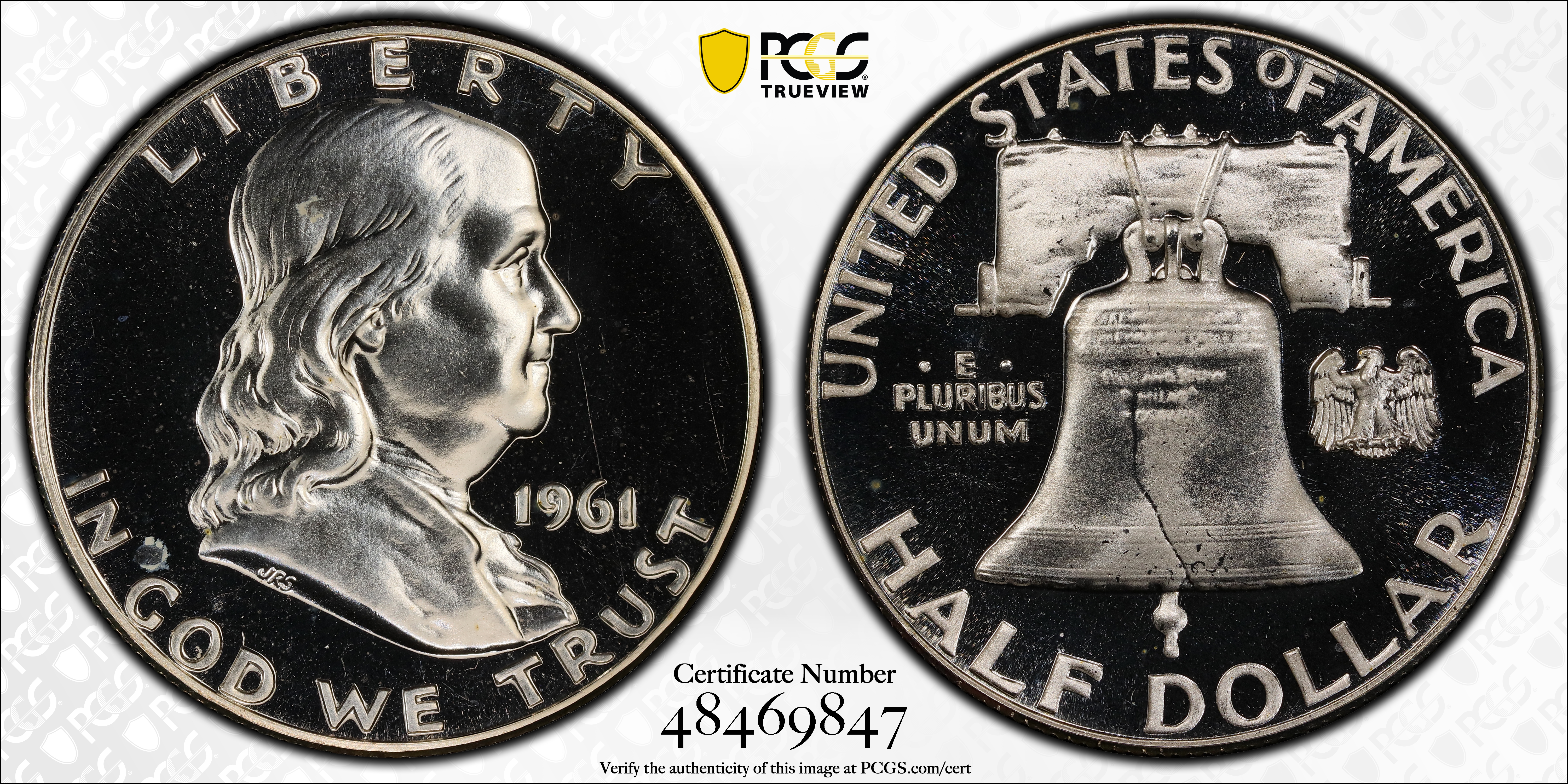 The 1961 Proof Franklin Half Dollar is one of the more common proof coins from the series. Its similar to Franklin Half Proofs struck from 1960-1964. Examples displaying full cameo and deep cameo surfaces are much scarcer and command higher premiums.