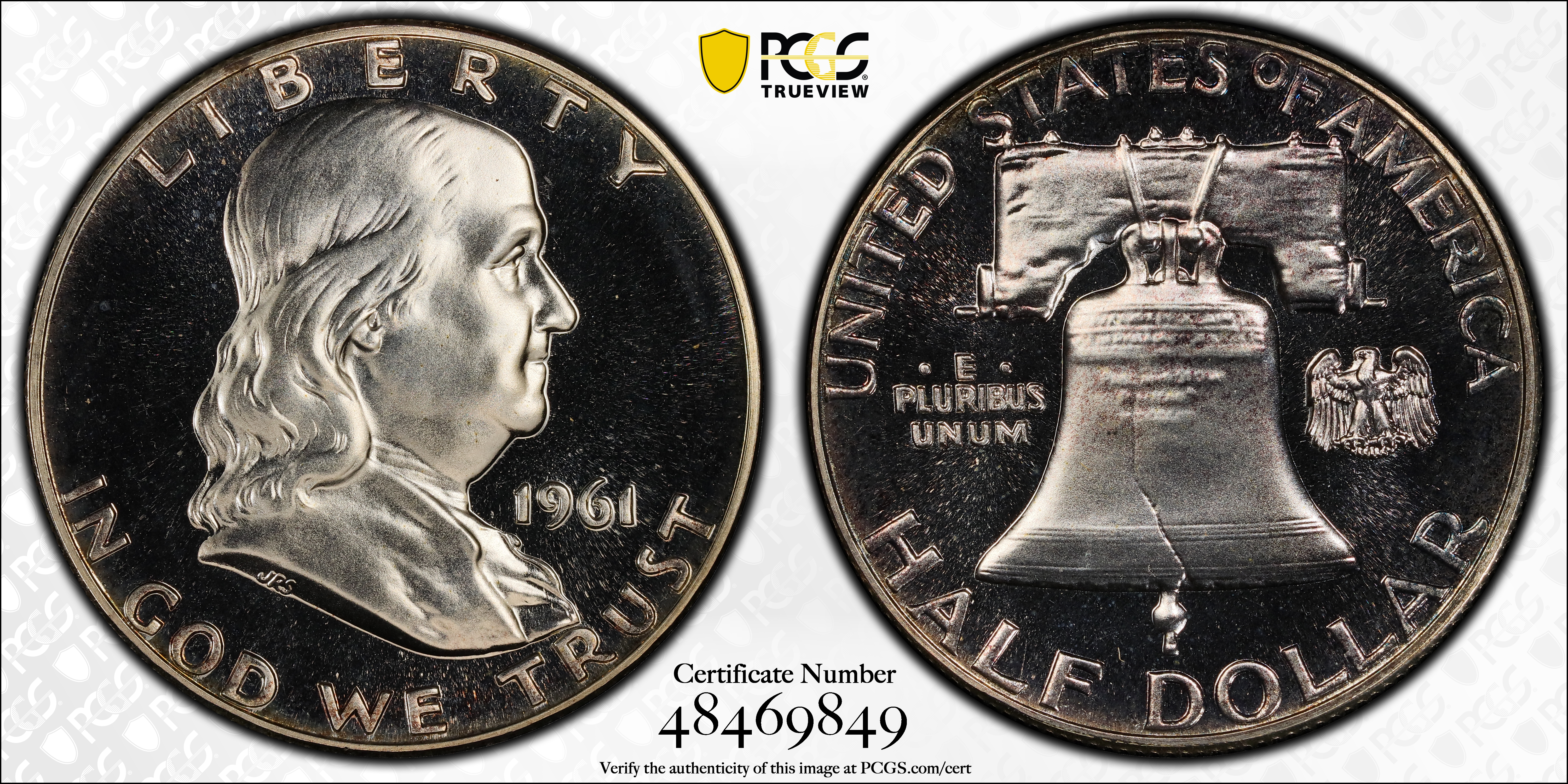 The 1961 Proof Franklin Half Dollar is one of the more common proof coins from the series. Its similar to Franklin Half Proofs struck from 1960-1964. Examples displaying full cameo and deep cameo surfaces are much scarcer and command higher premiums.