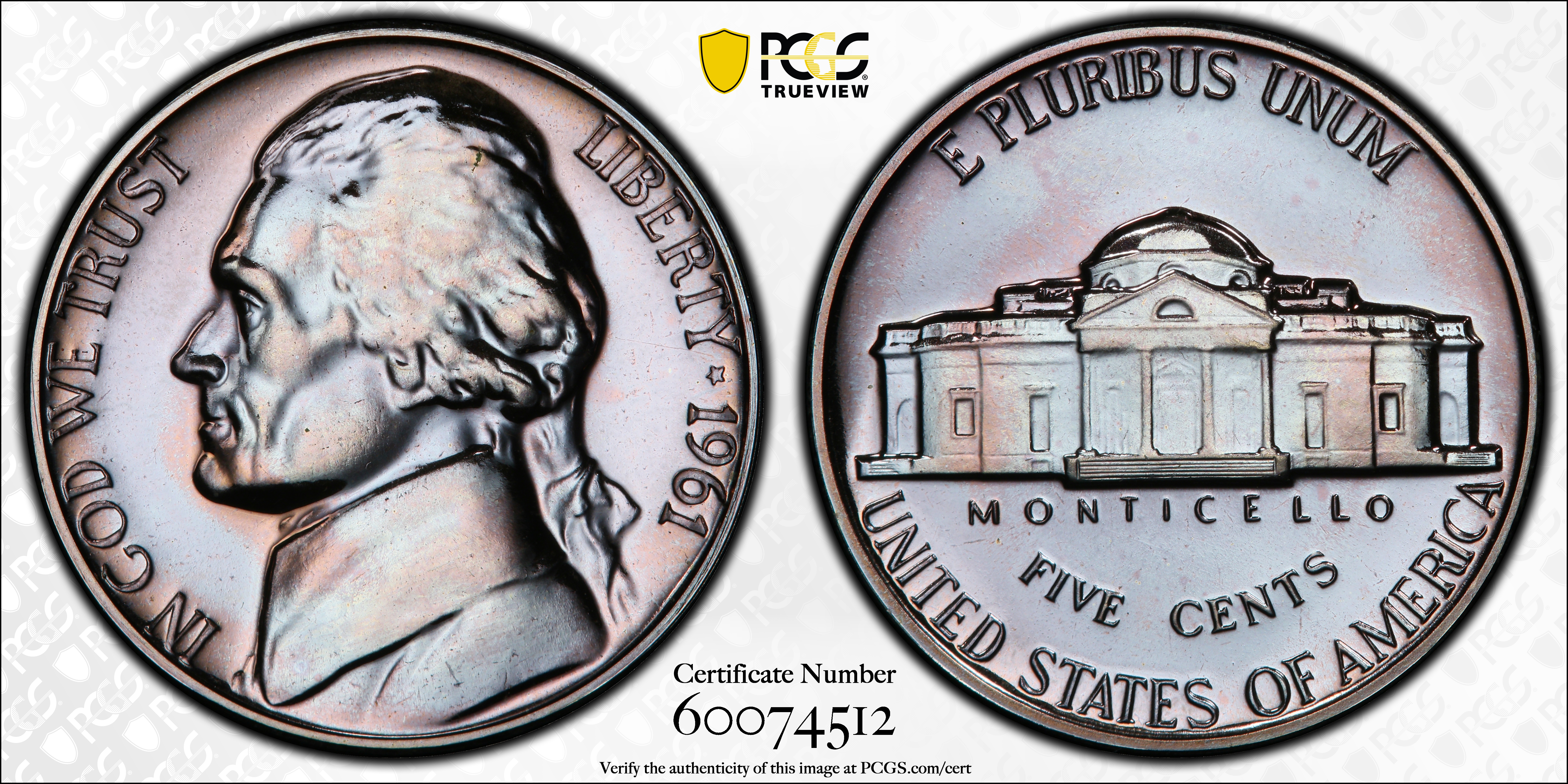 1961 5C PR67 Certification #60074512, PCGS #4193
