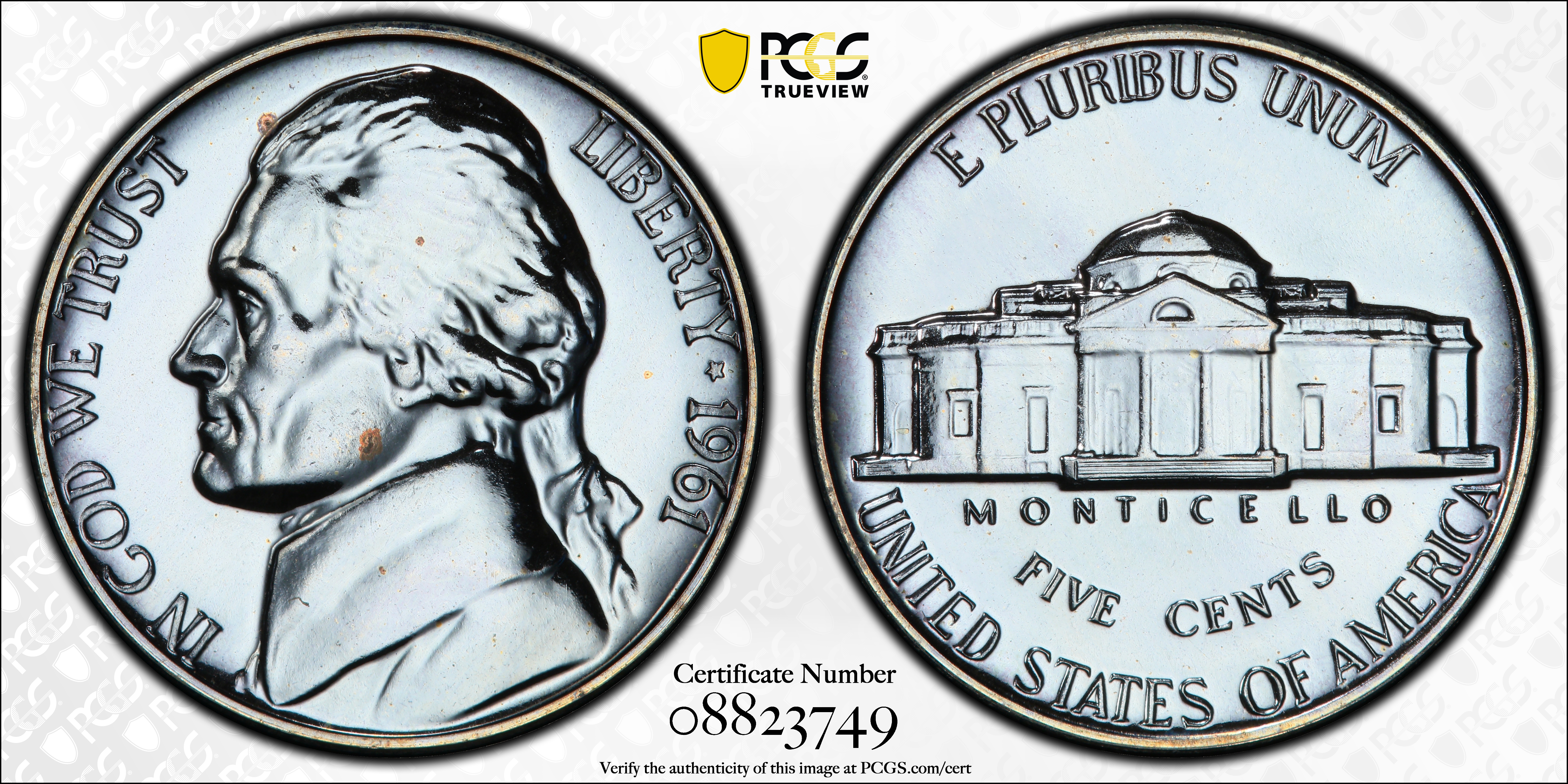 1961 5C PR67 Certification #08823749, PCGS #4193