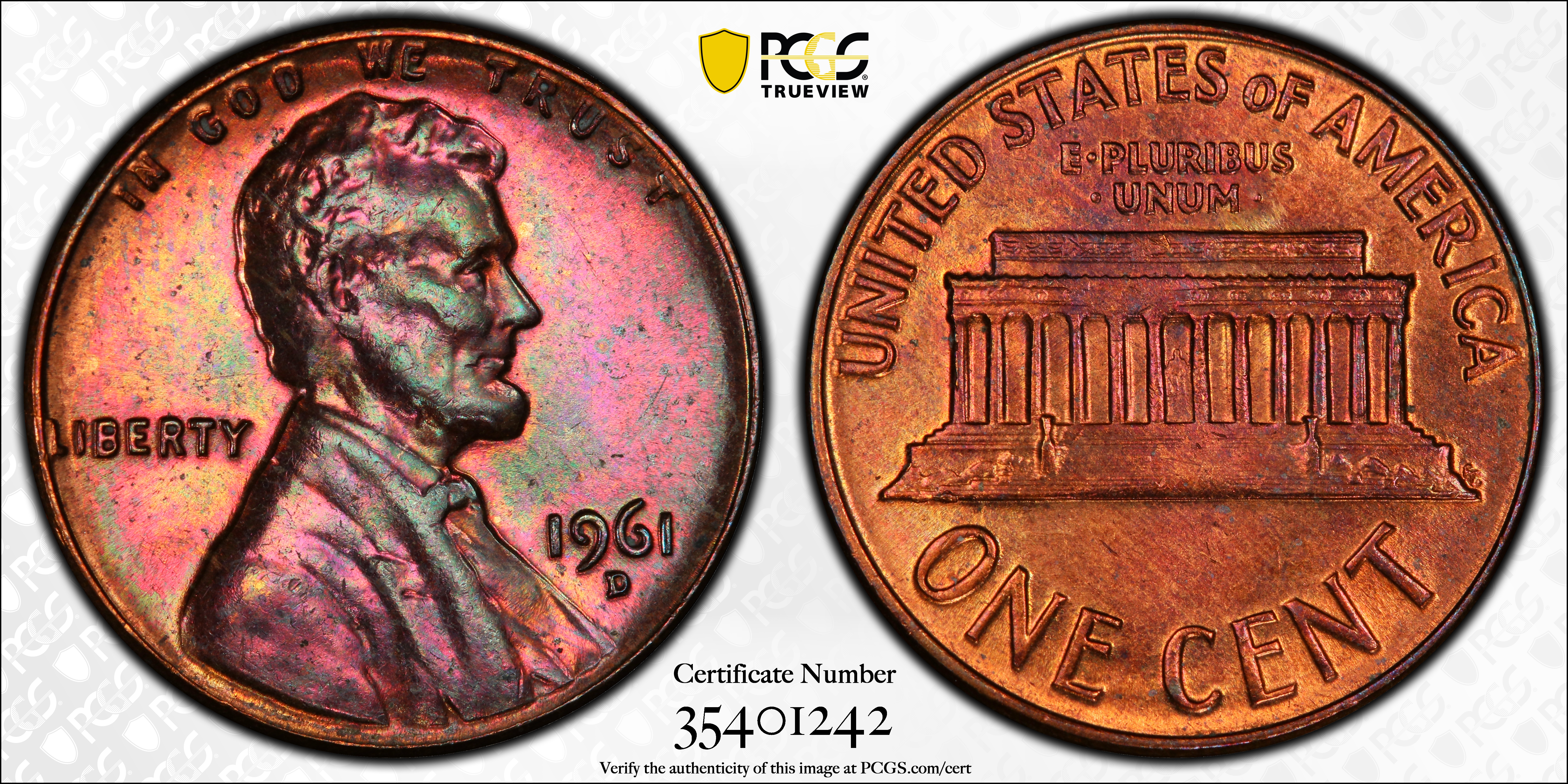 1961-D 1C, RB MS65RB Certification #35401242, PCGS #2874