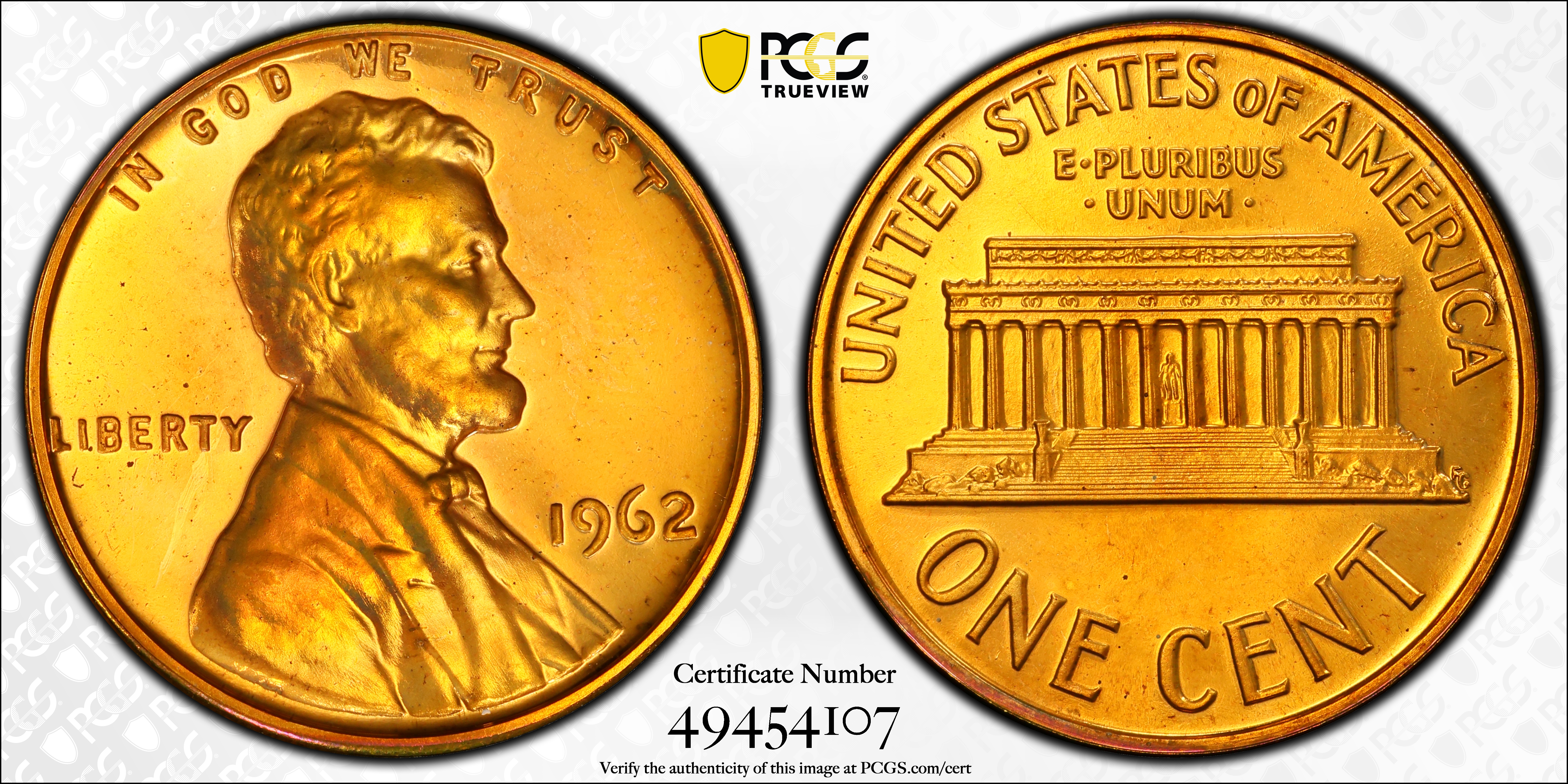 1962 1C, RD PR67RD Certification #49454107, PCGS #3398