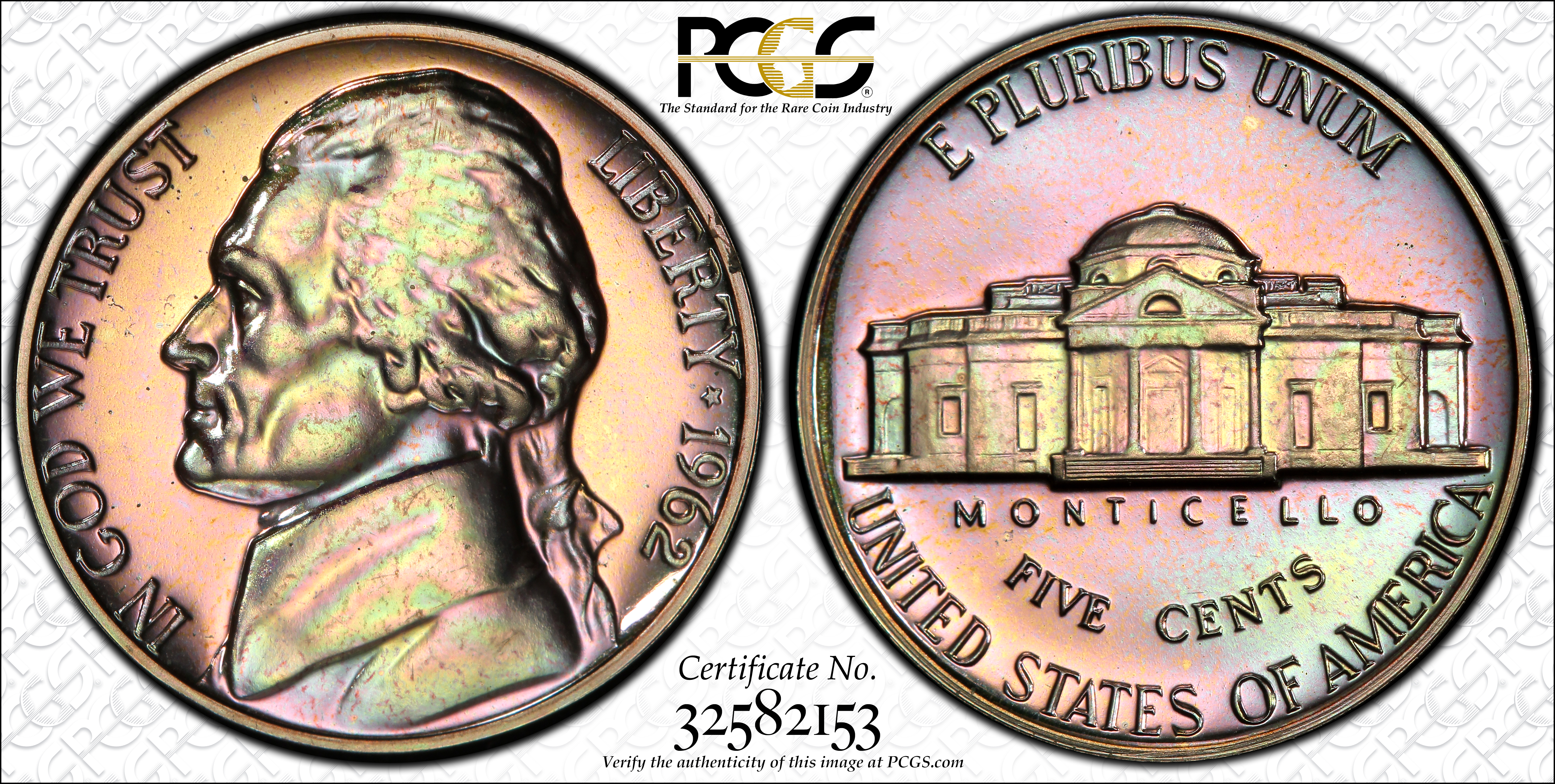 The U.S. Mint produced more than enough1962 Proof Jefferson Nickels to meet the collectors demand. Therefore, most examples can easily be obtained at minimal cost. Examples displaying cameo contrast command a slightly higher premium. Similarly, examples displaying deep cameo contrast also command a slight premium from cameo examples.