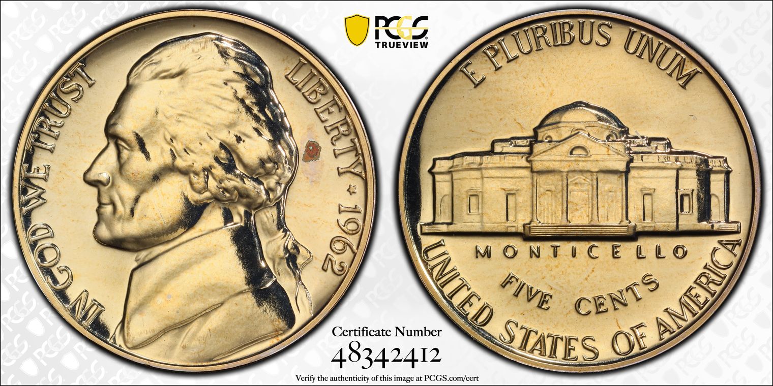 The U.S. Mint produced more than enough1962 Proof Jefferson Nickels to meet the collectors demand. Therefore, most examples can easily be obtained at minimal cost. Examples displaying cameo contrast command a slightly higher premium. Similarly, examples displaying deep cameo contrast also command a slight premium from cameo examples.