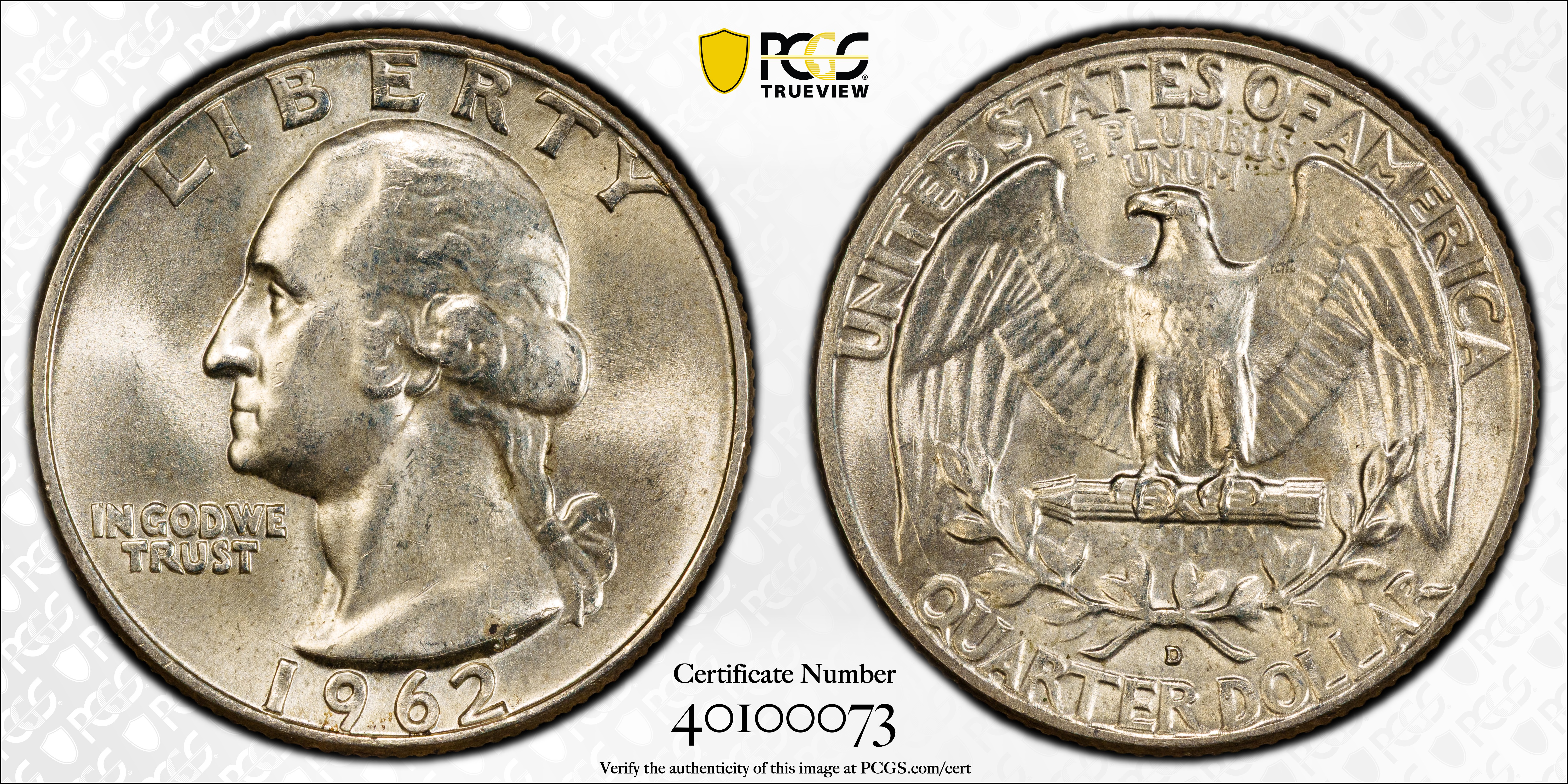 1962-D 25C MS64 Certification #40100073, PCGS #5873