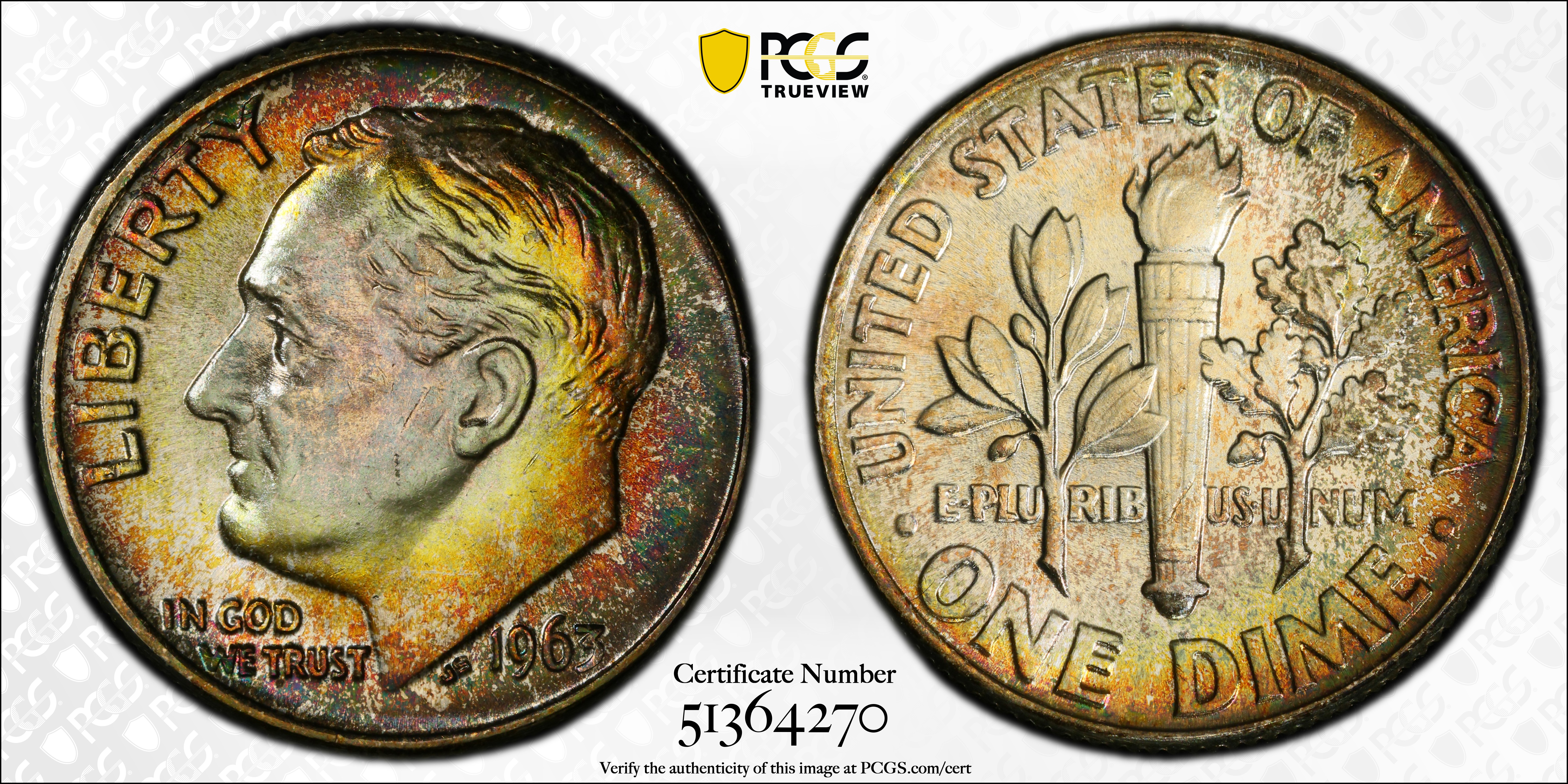 1963 10C MS66+ Certification #51364270, PCGS #5126