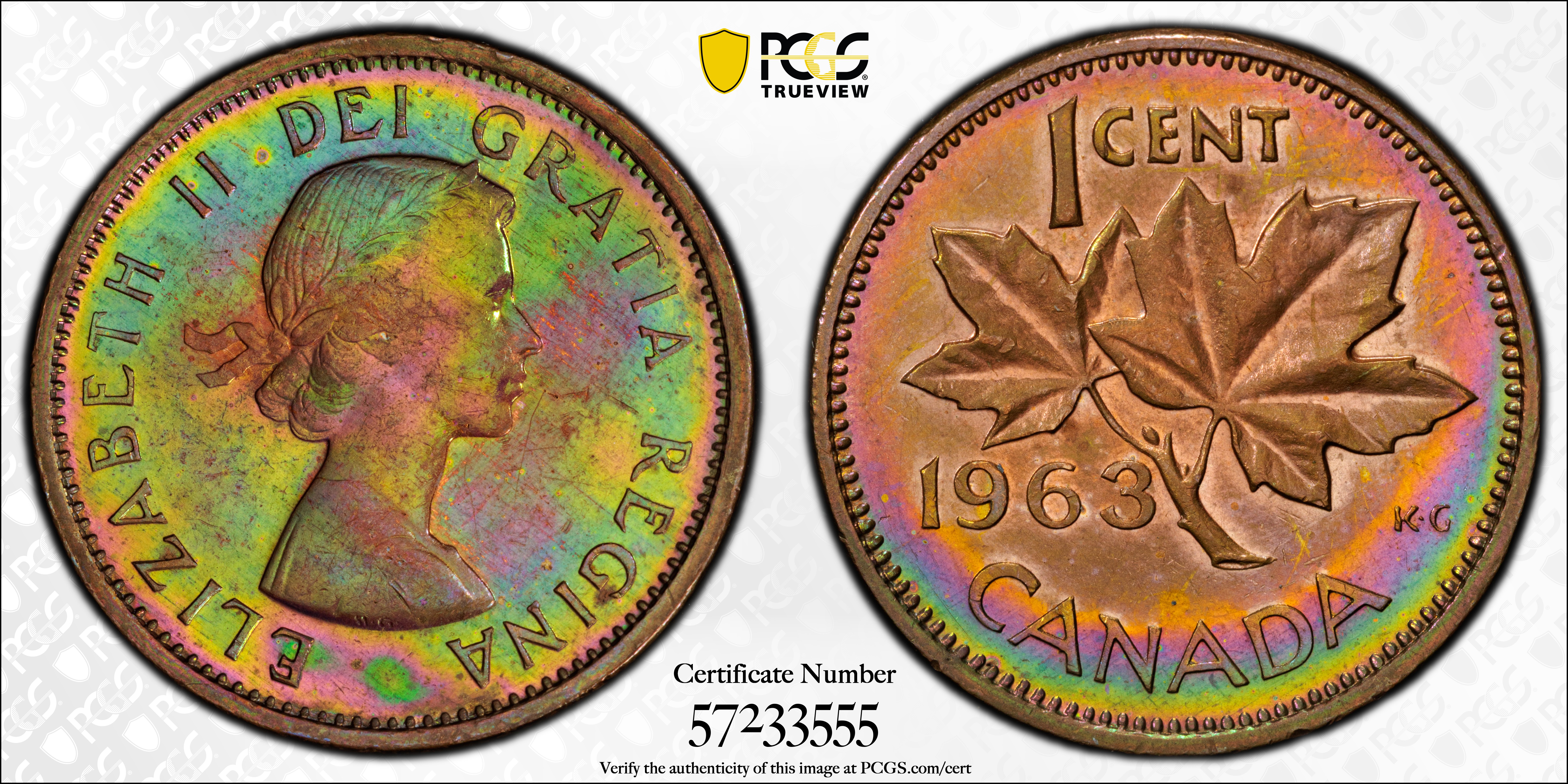 1963 1C, BN MS63BN Certification #57233555, PCGS #162165