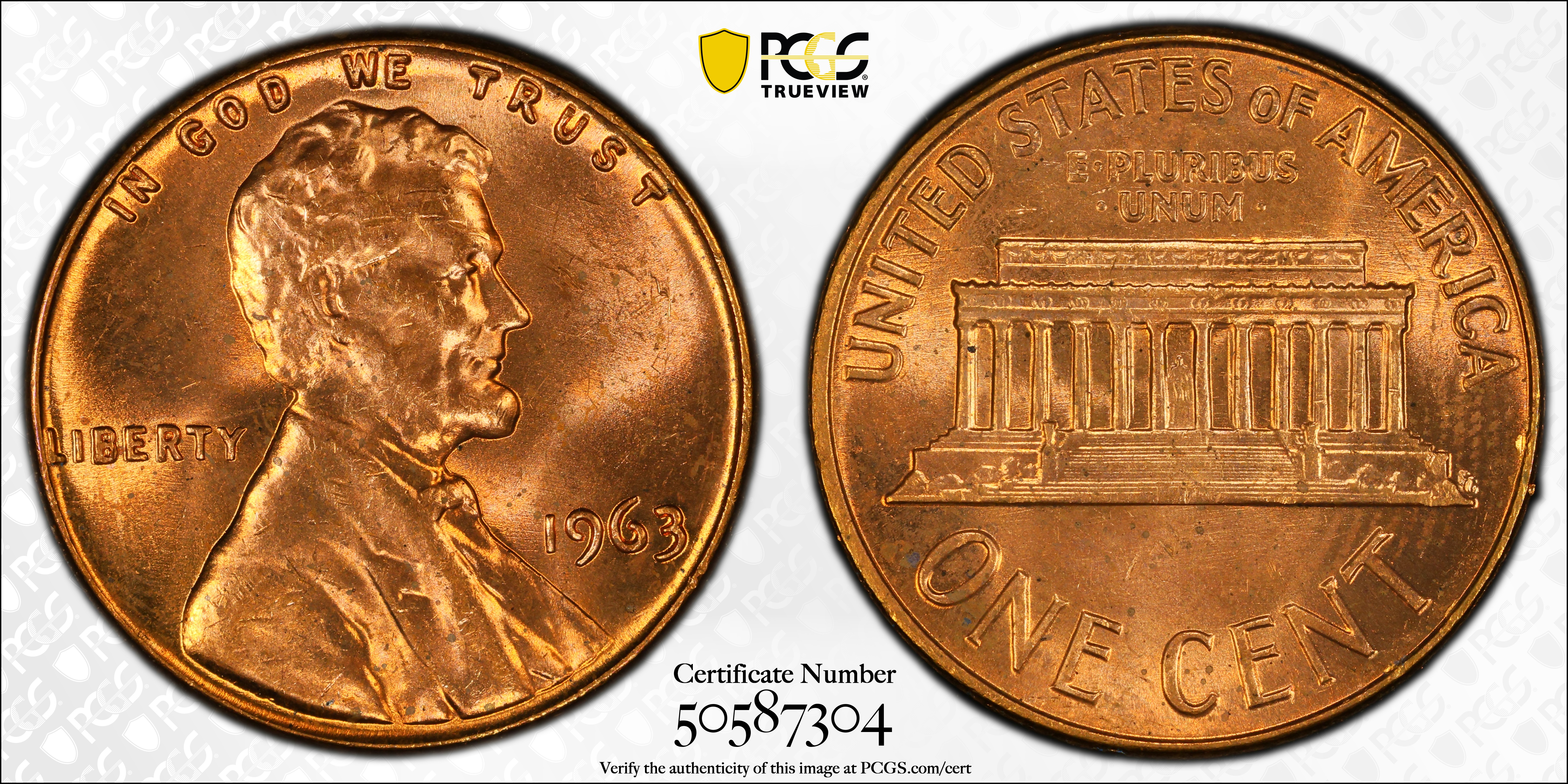 1963 1C, RD MS64RD Certification #50587304, PCGS #2884