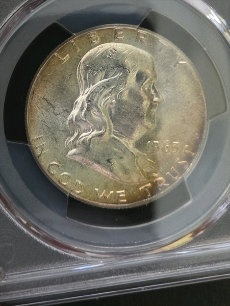 The 1963-P circulation strike Franklin Half Dollar has a significantly large mintage compared to most coins in the series. It's mintage of over 22 million coins makes it a common issue in the series. And it is common in all circulated grades up to MS63 condition. In MS64 to MS65 condition there are still tens of thousands of examples available and not scarce by any means. But examples in MS64 to MS65 do tend to carry a premium of at least double their melt values. In MS66 condition it now becomes really scarce with about 50 coins known and none being finer.