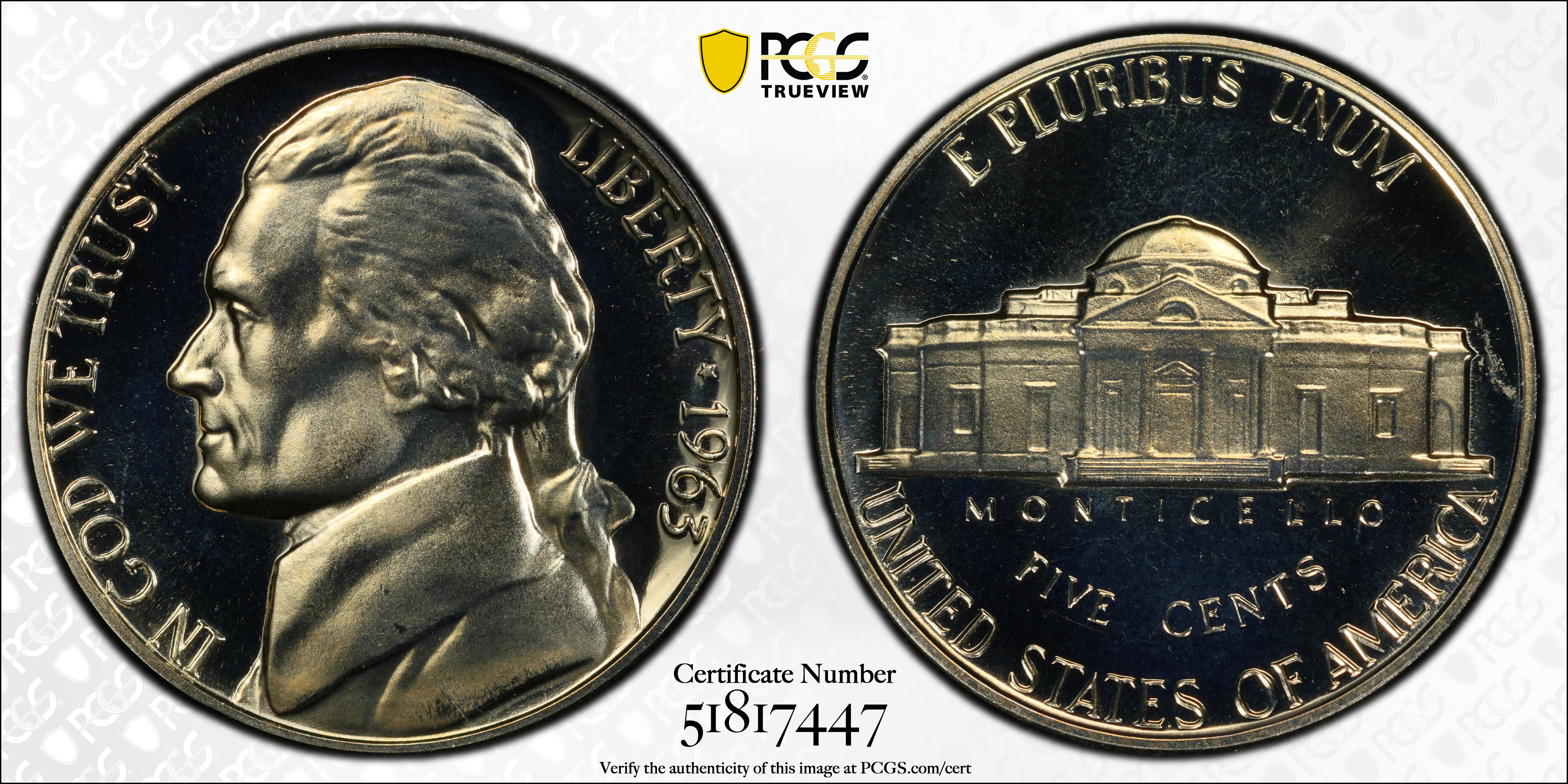 1963 5C, DCAM PR68DCAM Certification #51817447, PCGS #94195