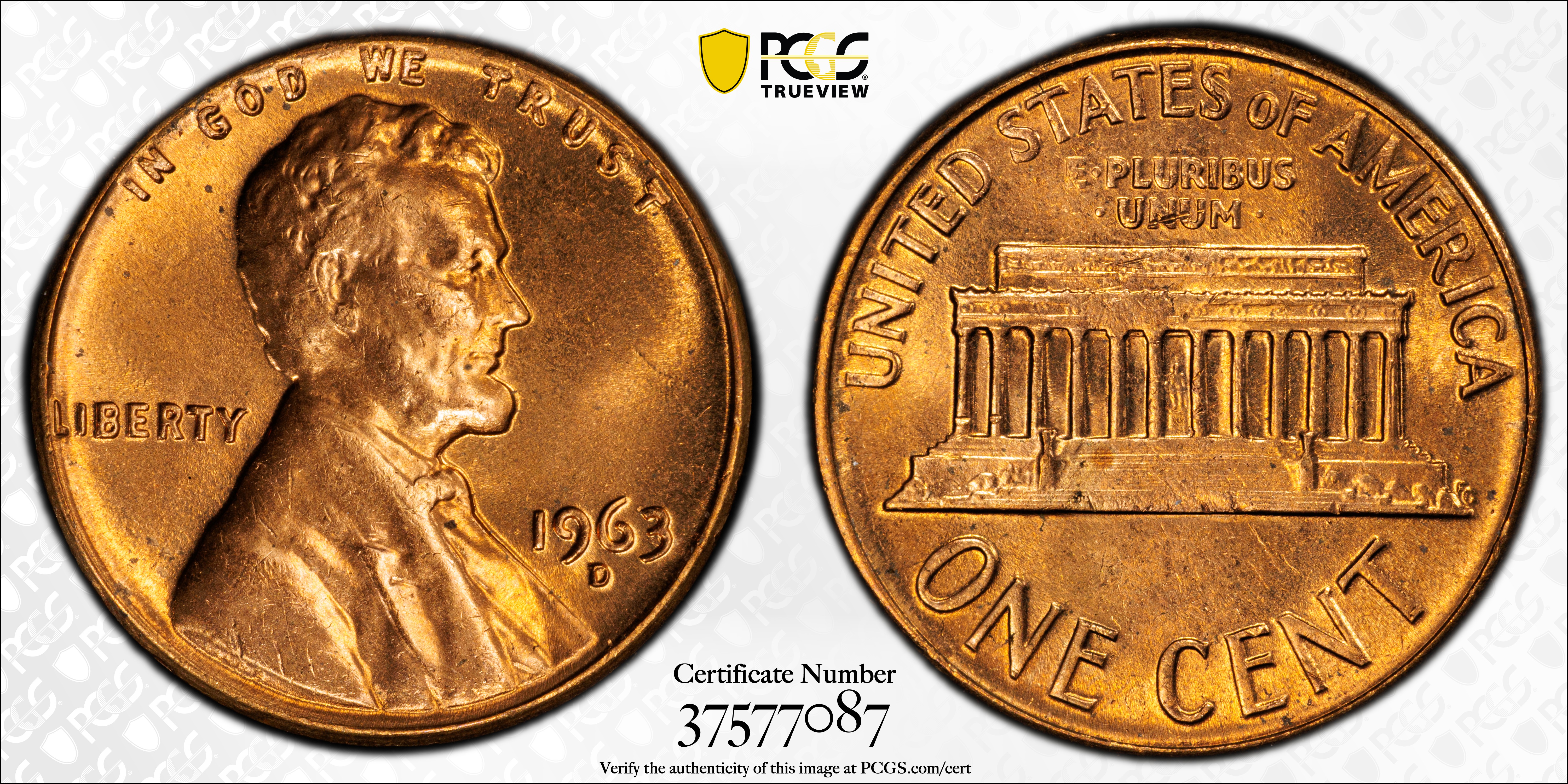 1963-D 1C DDO, FS-101, RD MS65RD Certification #37577087, PCGS #37971
