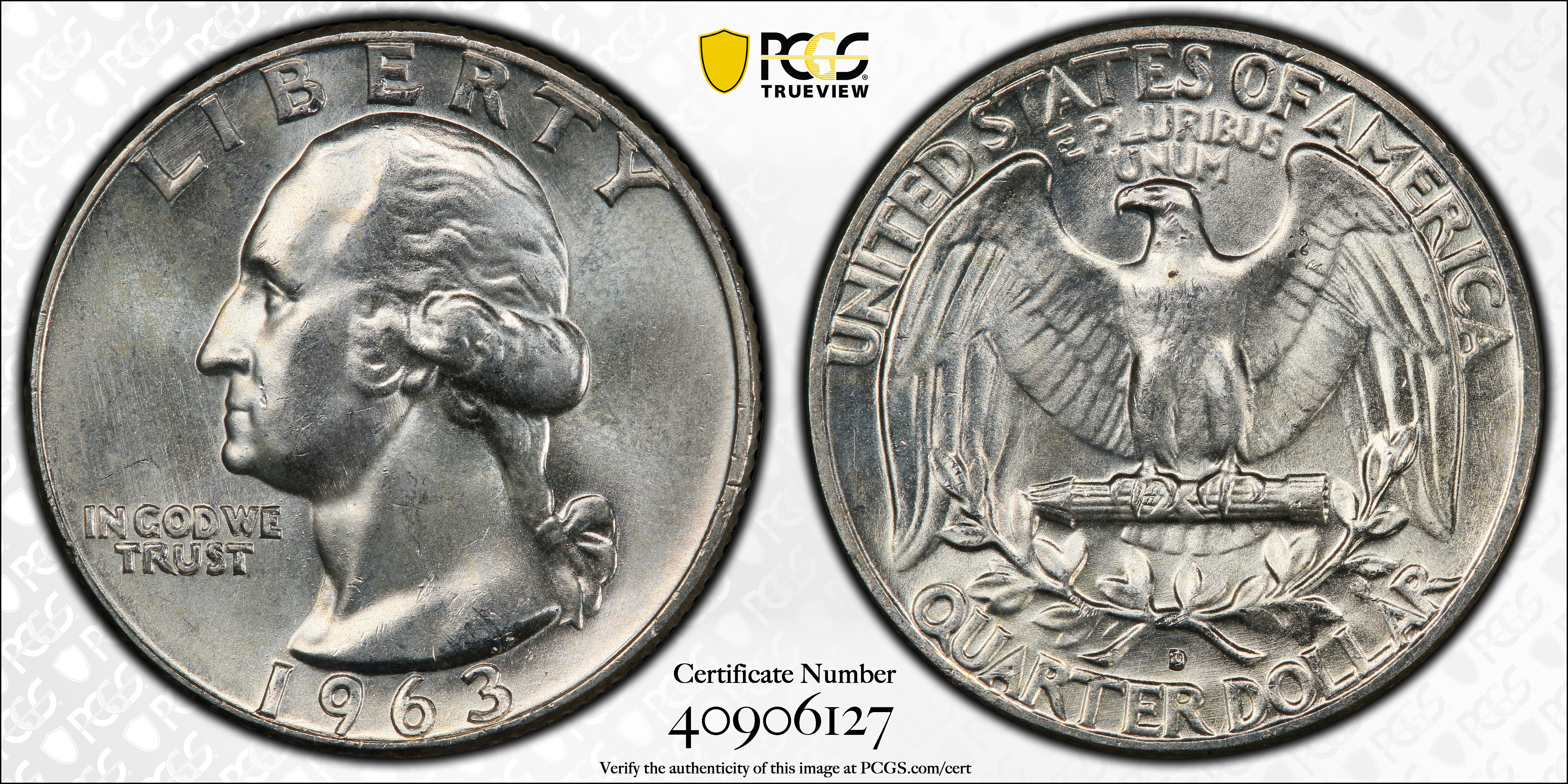 1963-D 25C MS64 Certification #40906127, PCGS #5875