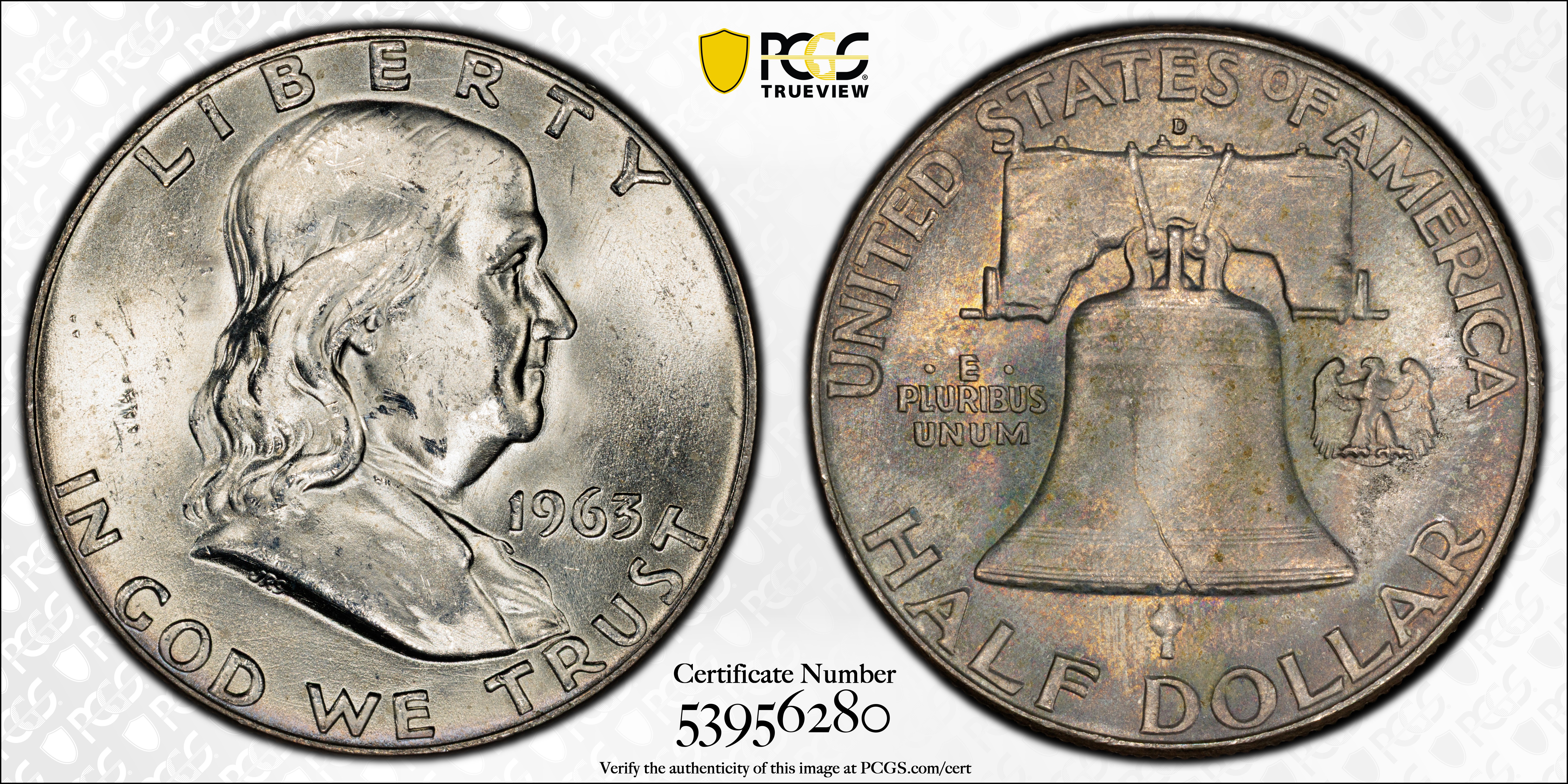 1963-D 50C, FBL MS64FBL Certification #53956280, PCGS #86685