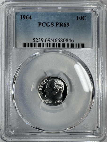 1964 10C PR69 Certification #46680846, PCGS #5239