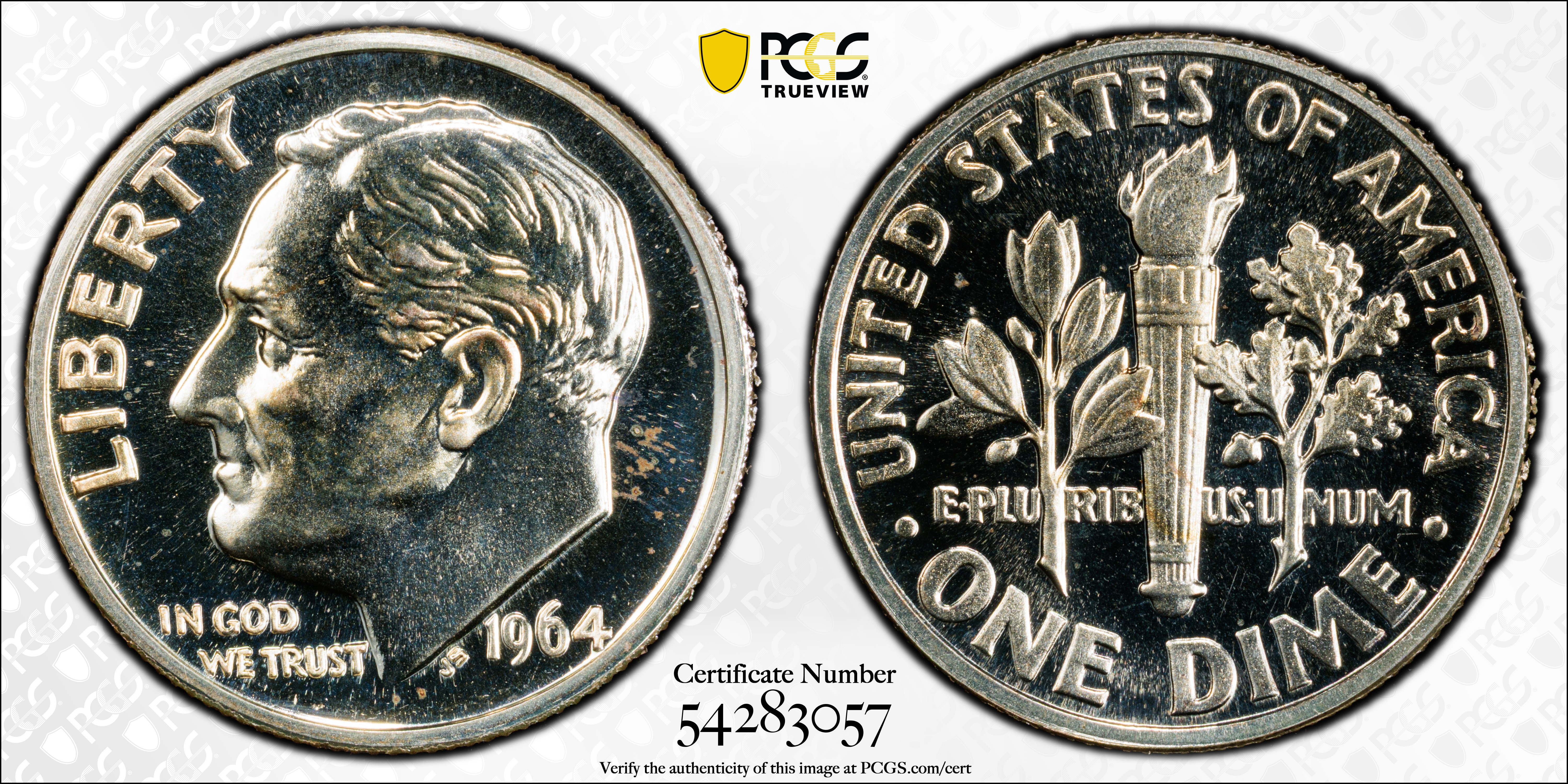 1964 10C PR67 Certification #54283057, PCGS #5239