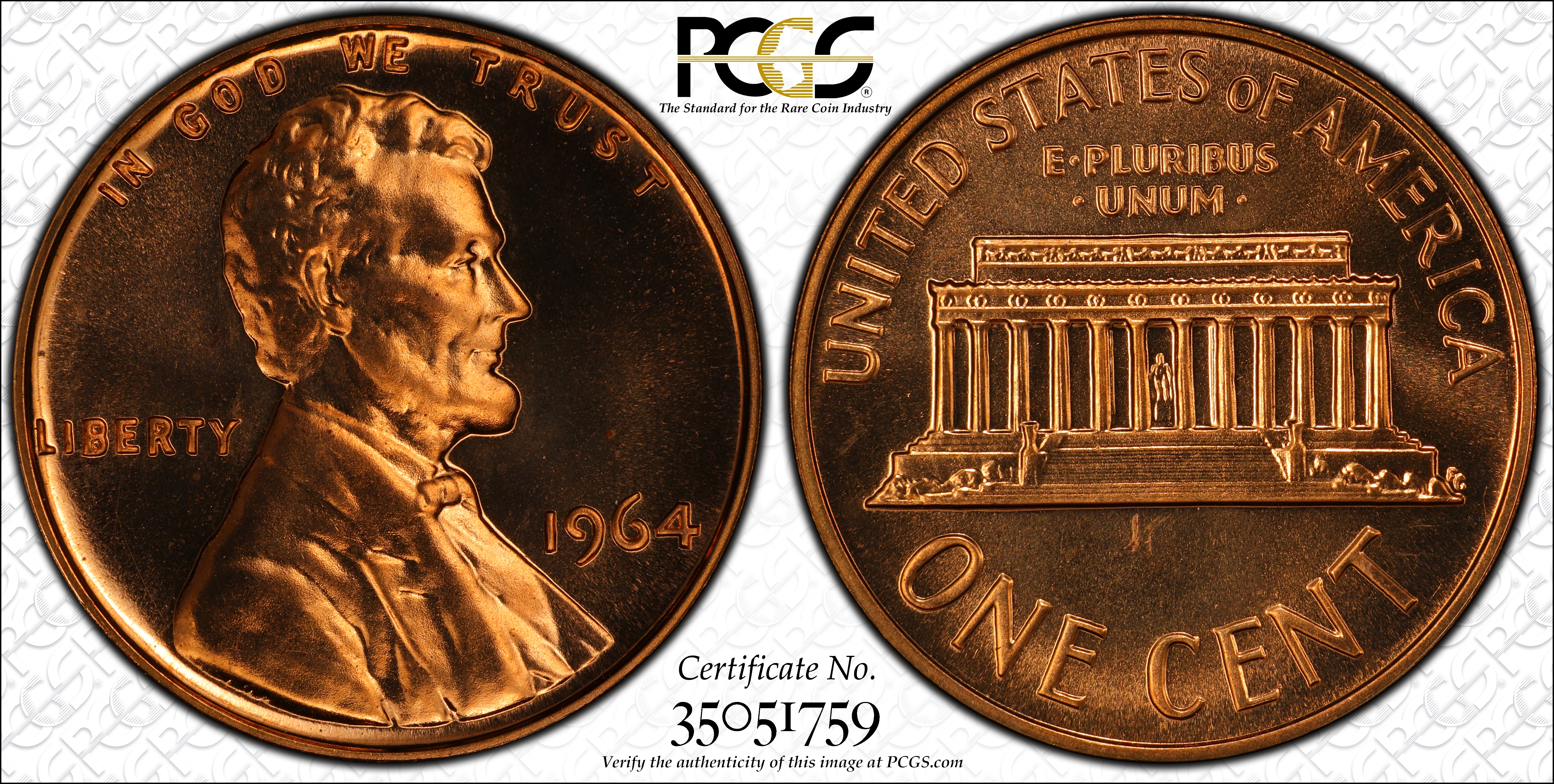 1964 1C, RD PR67RD Certification #35051759, PCGS #3404