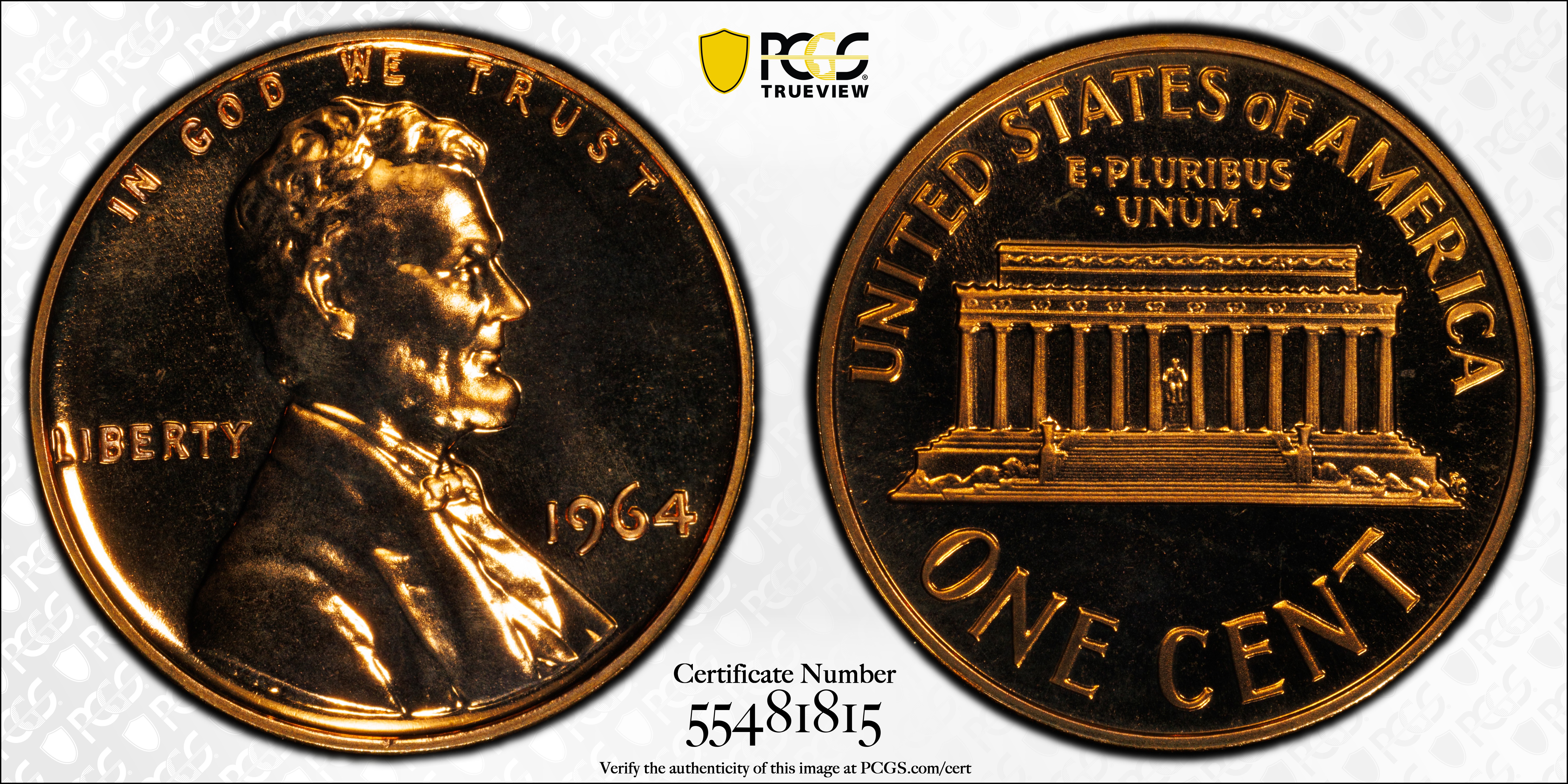 1964 1C, RD PR68RD Certification #55481815, PCGS #3404
