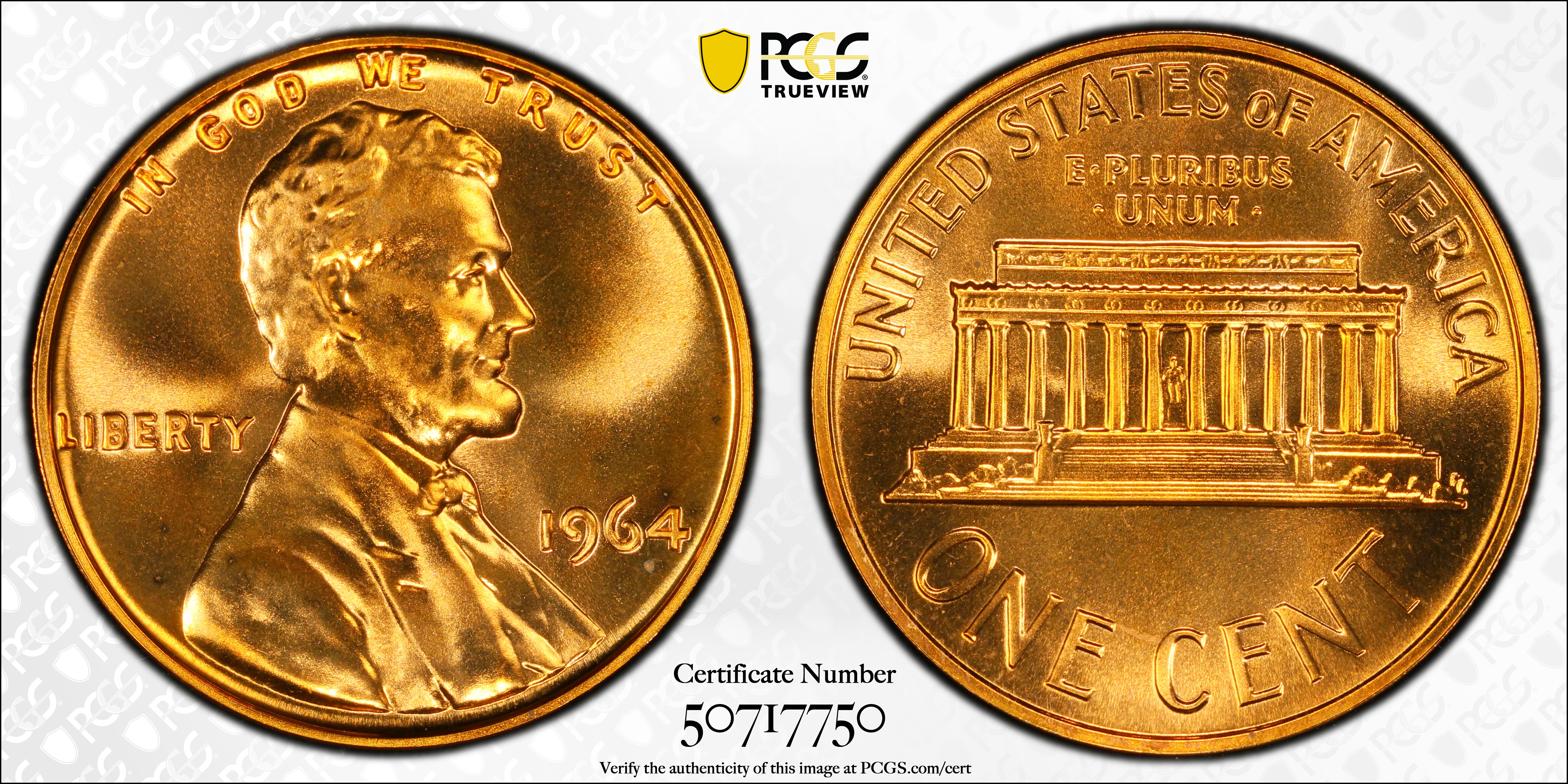 1964 1C, RD PR68RD Certification #50717750, PCGS #3404
