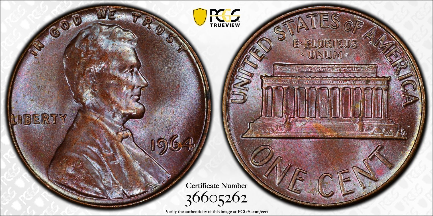 1964 1C, BN MS65BN Certification #36605262, PCGS #2888