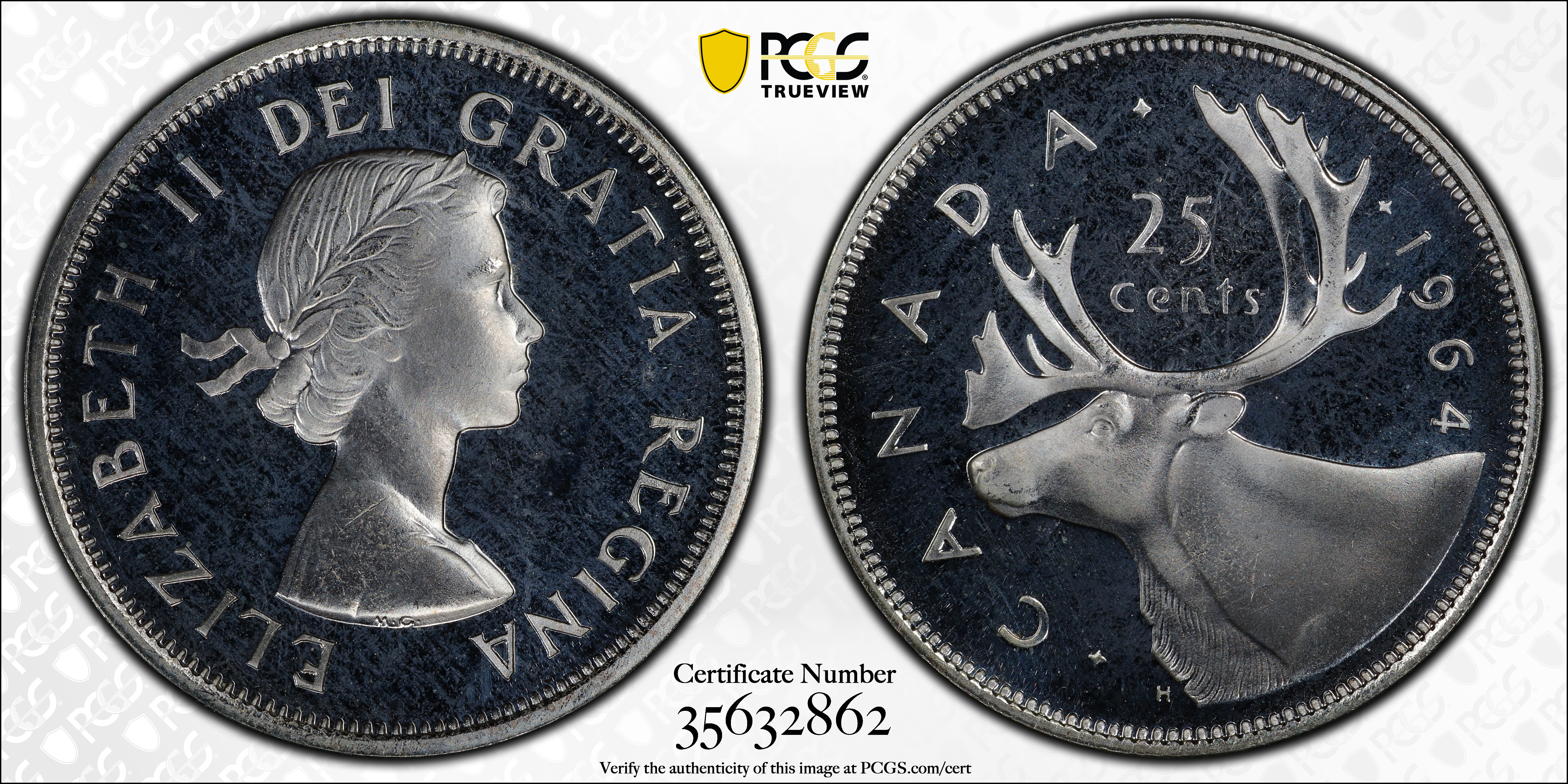 1964 25C, DCAM PL66DCAM Certification #35632862, PCGS #676536