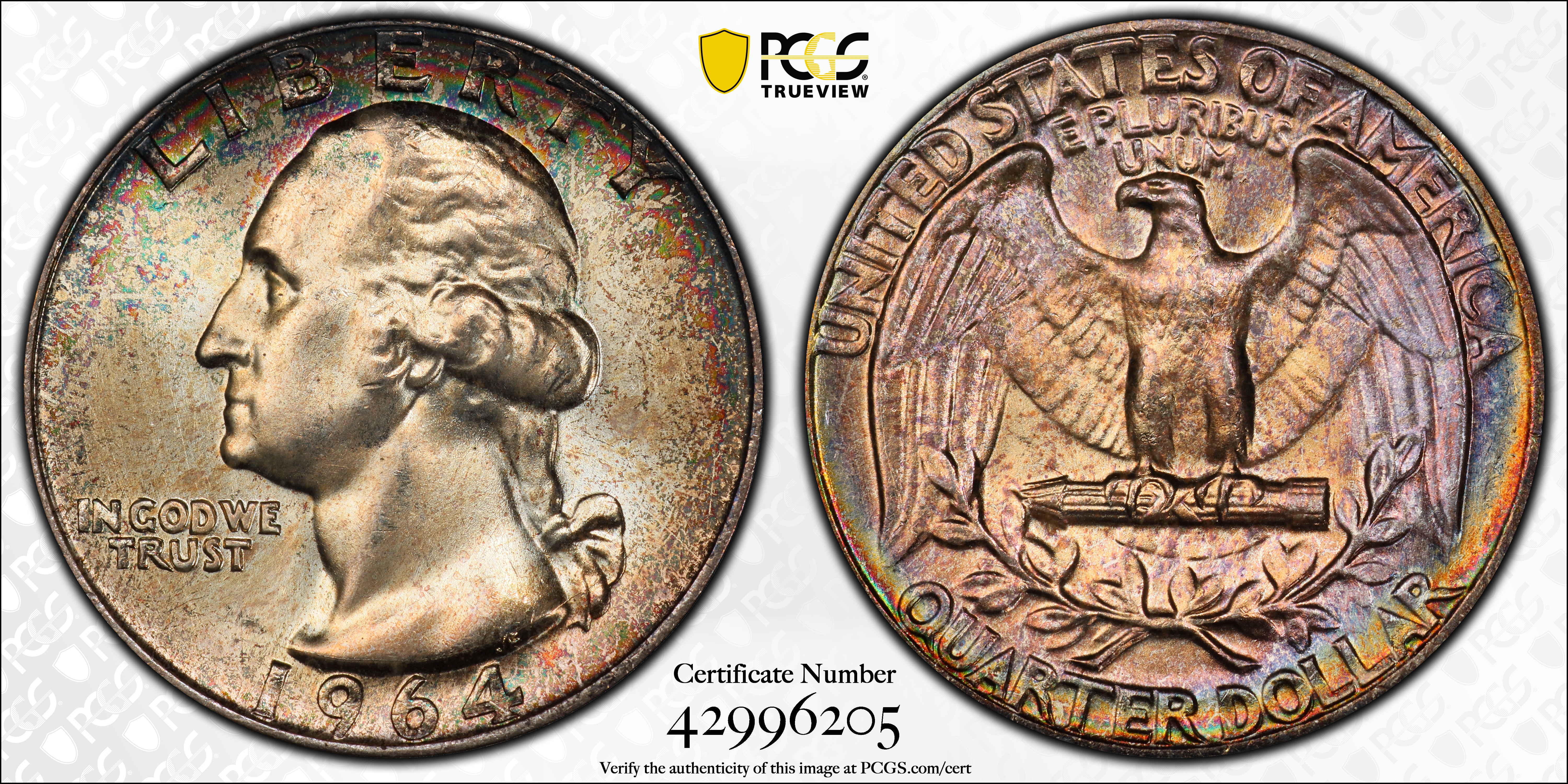 1964 25C MS66 Certification #42996205, PCGS #5876