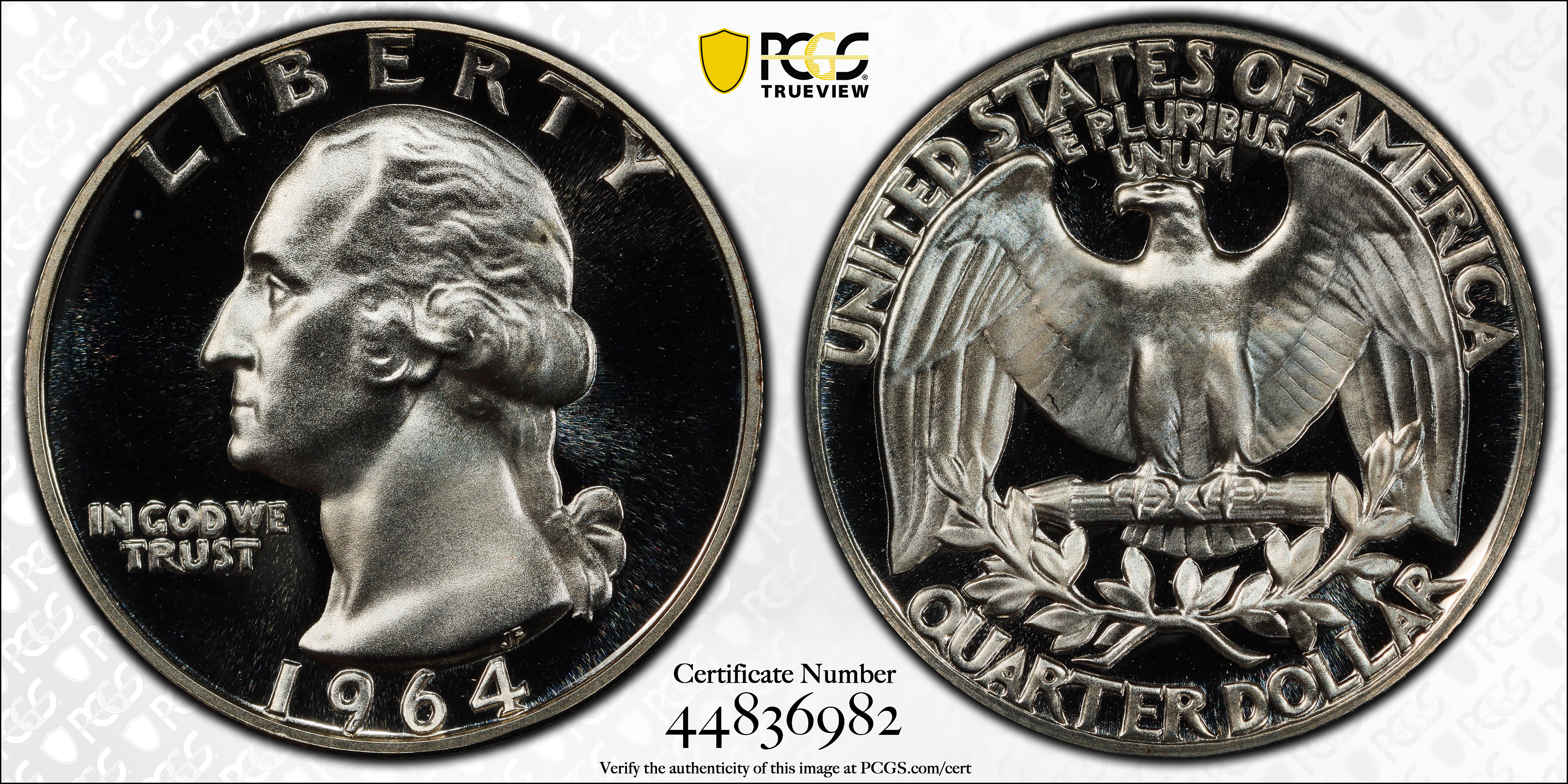 1964 25C, CAM PR68CAM Certification #44836982, PCGS #85996