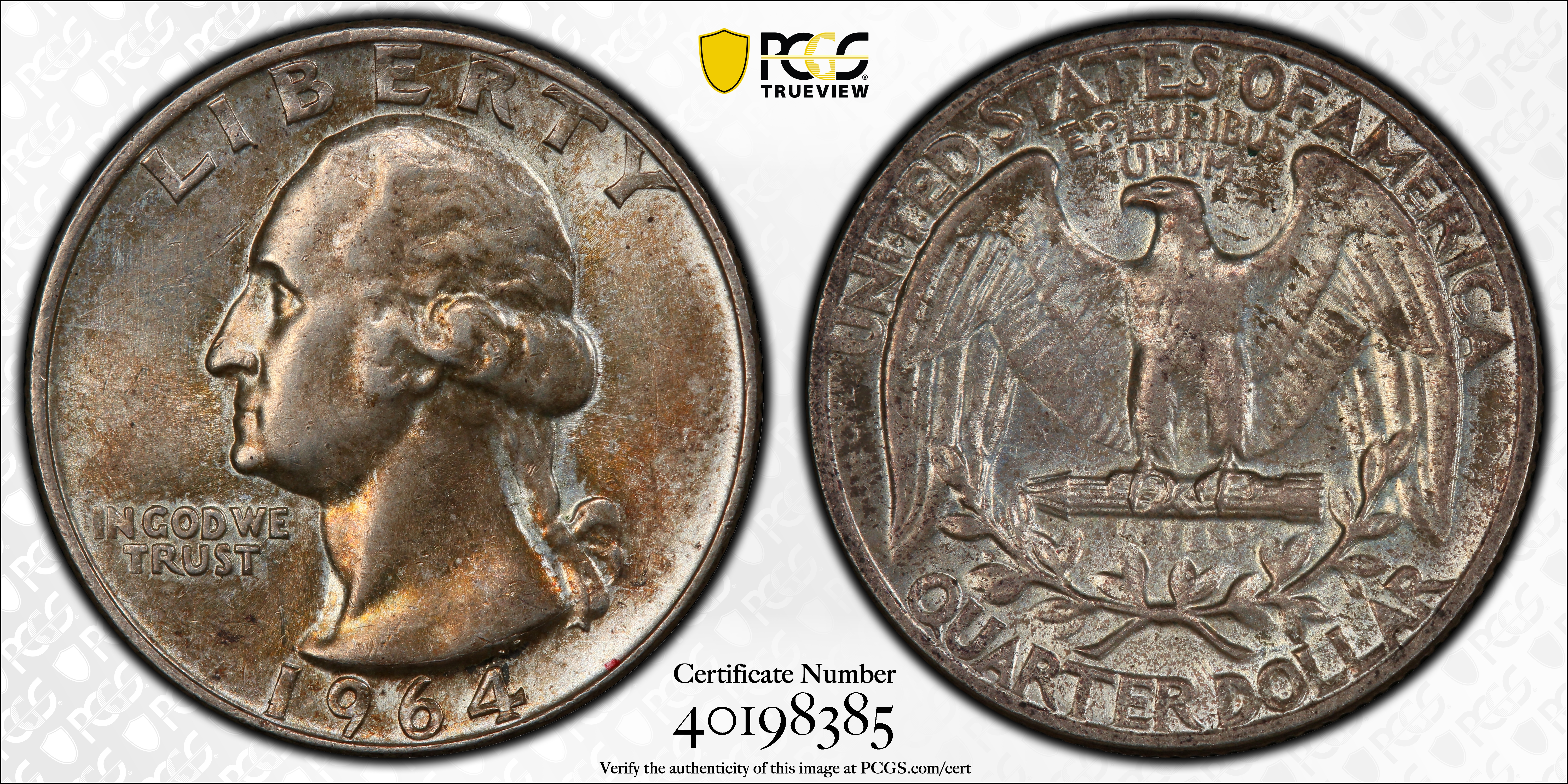 1964 25C AU55 Certification #40198385, PCGS #5876