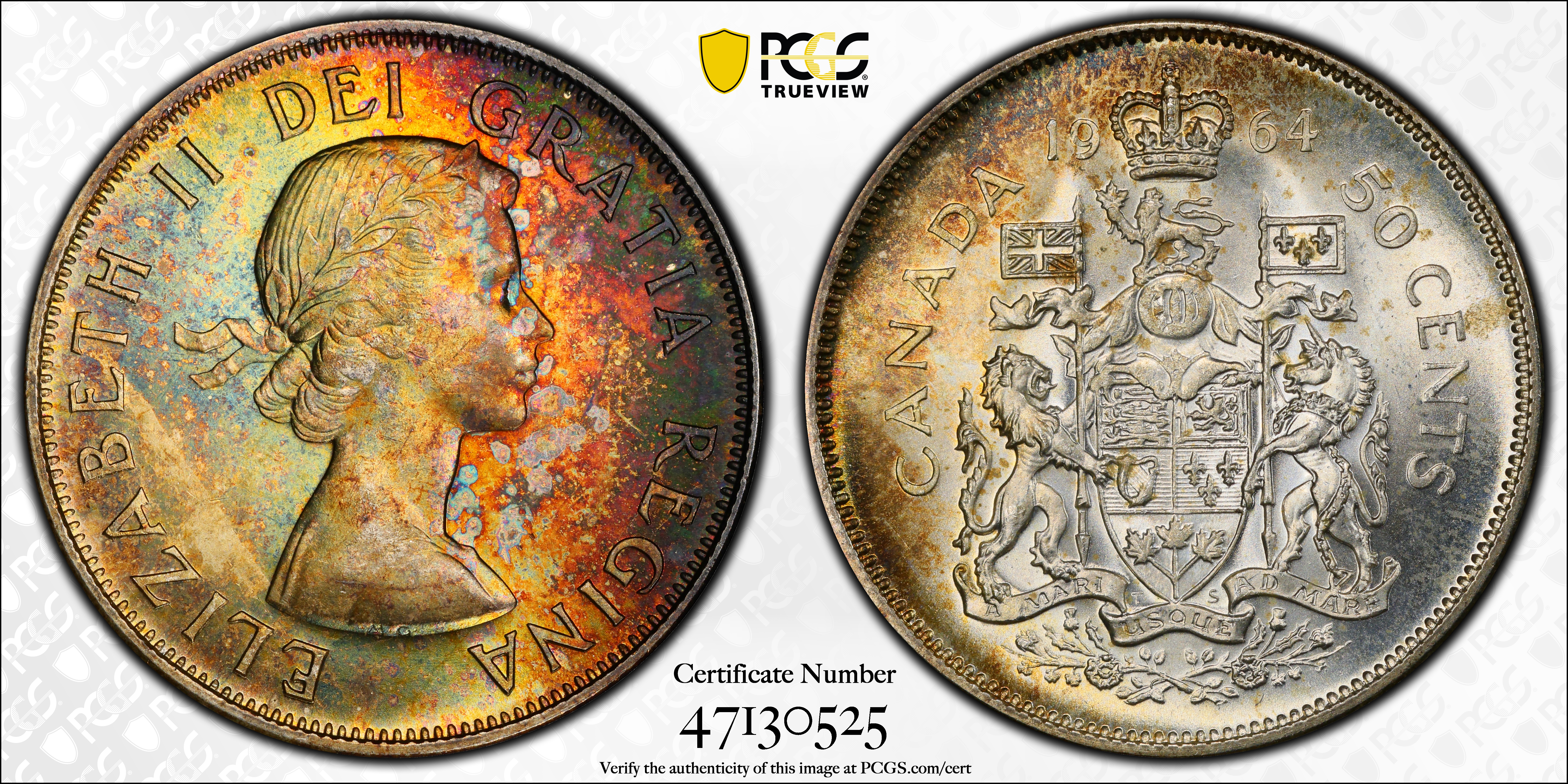 1964 50C MS65 Certification #47130525, PCGS #171035