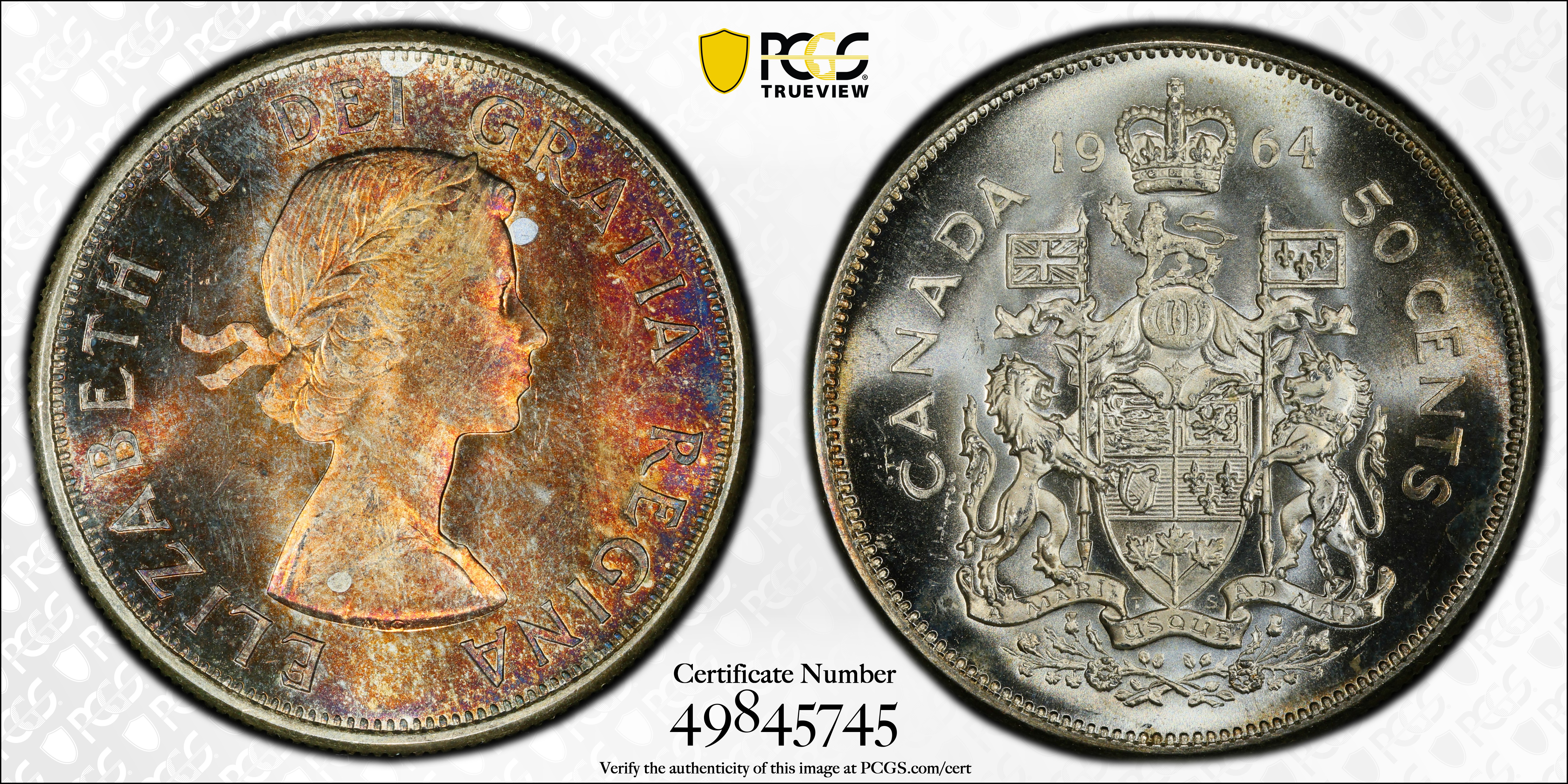 1964 50C MS65 Certification #49845745, PCGS #171035