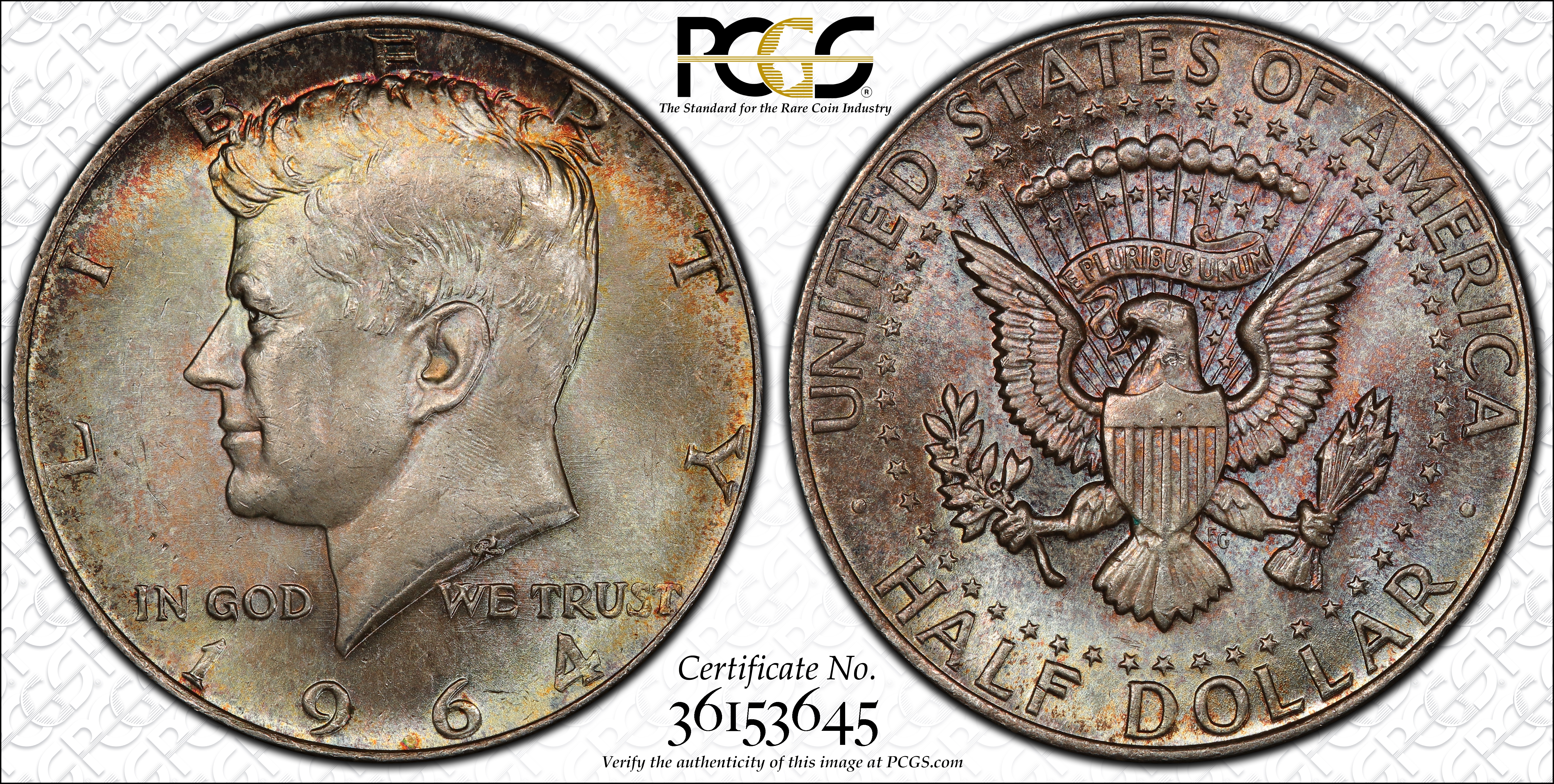 1964 50C MS65 Certification #36153645, PCGS #6706