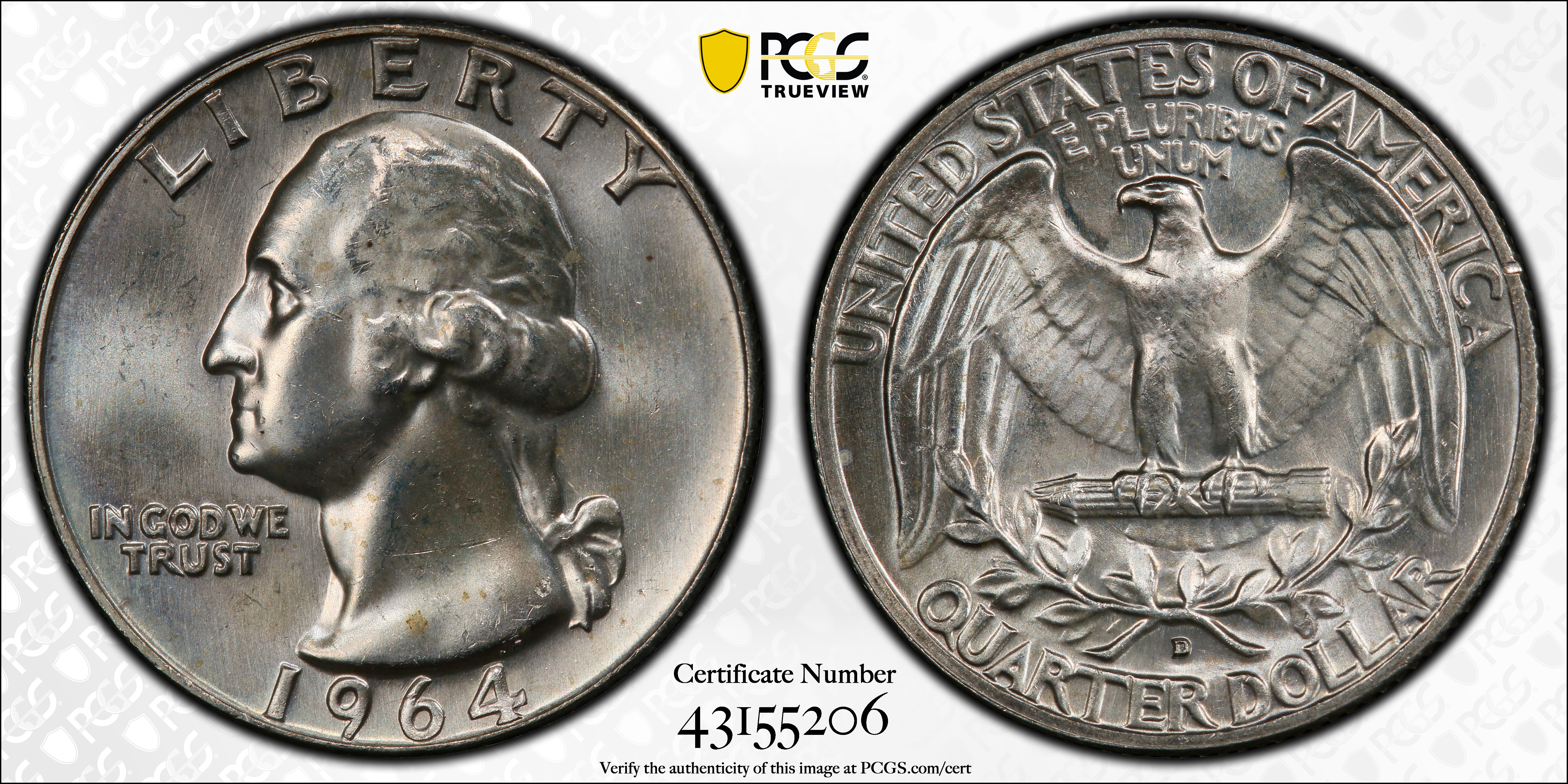 1964-D 25C MS65 Certification #43155206, PCGS #5877